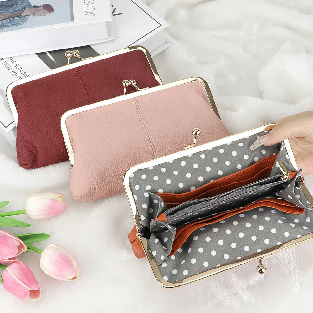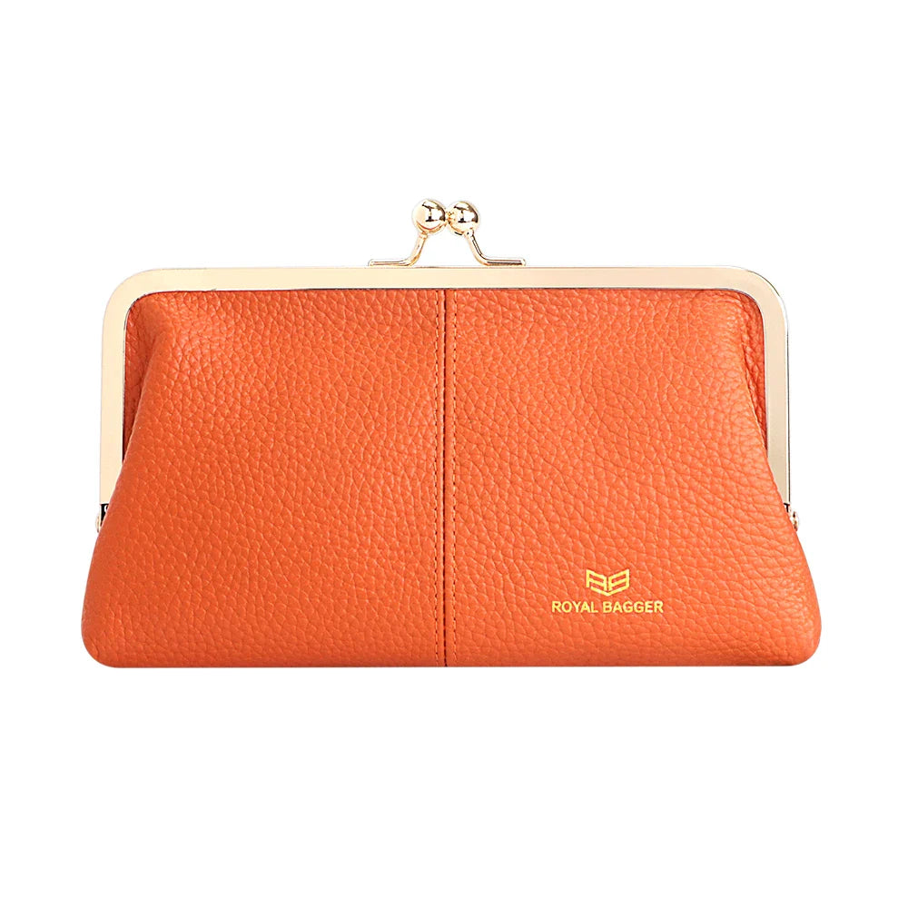 Royal Bagger RFID Kiss Lock Wallet, Solid Color Multi-card Slots Card Holder, Genuine Leather Clutch Purses for Women 1468