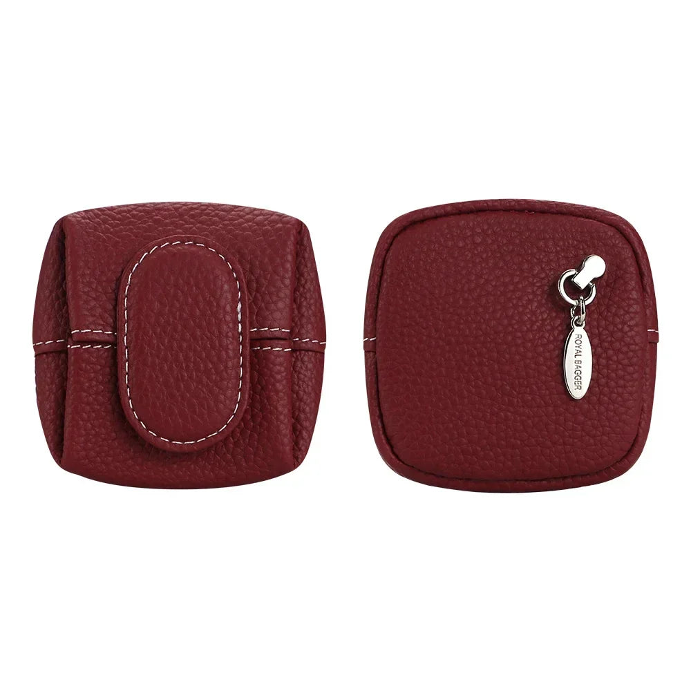 Royal Bagger Mini Lychee Pattern Coin Purse, Solid Color Buckle Key Earphone Storage Bag, Casual Change Pouch for Daily Use 1603