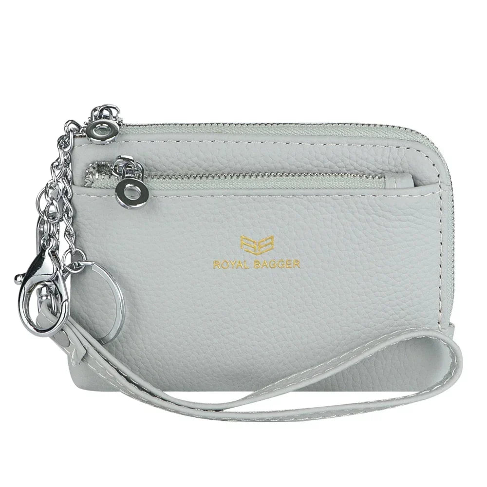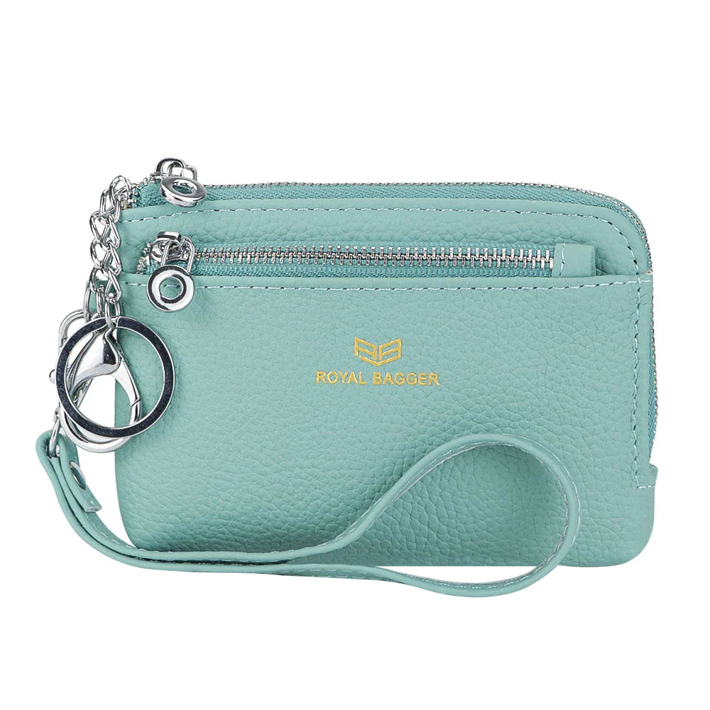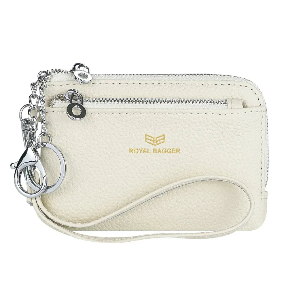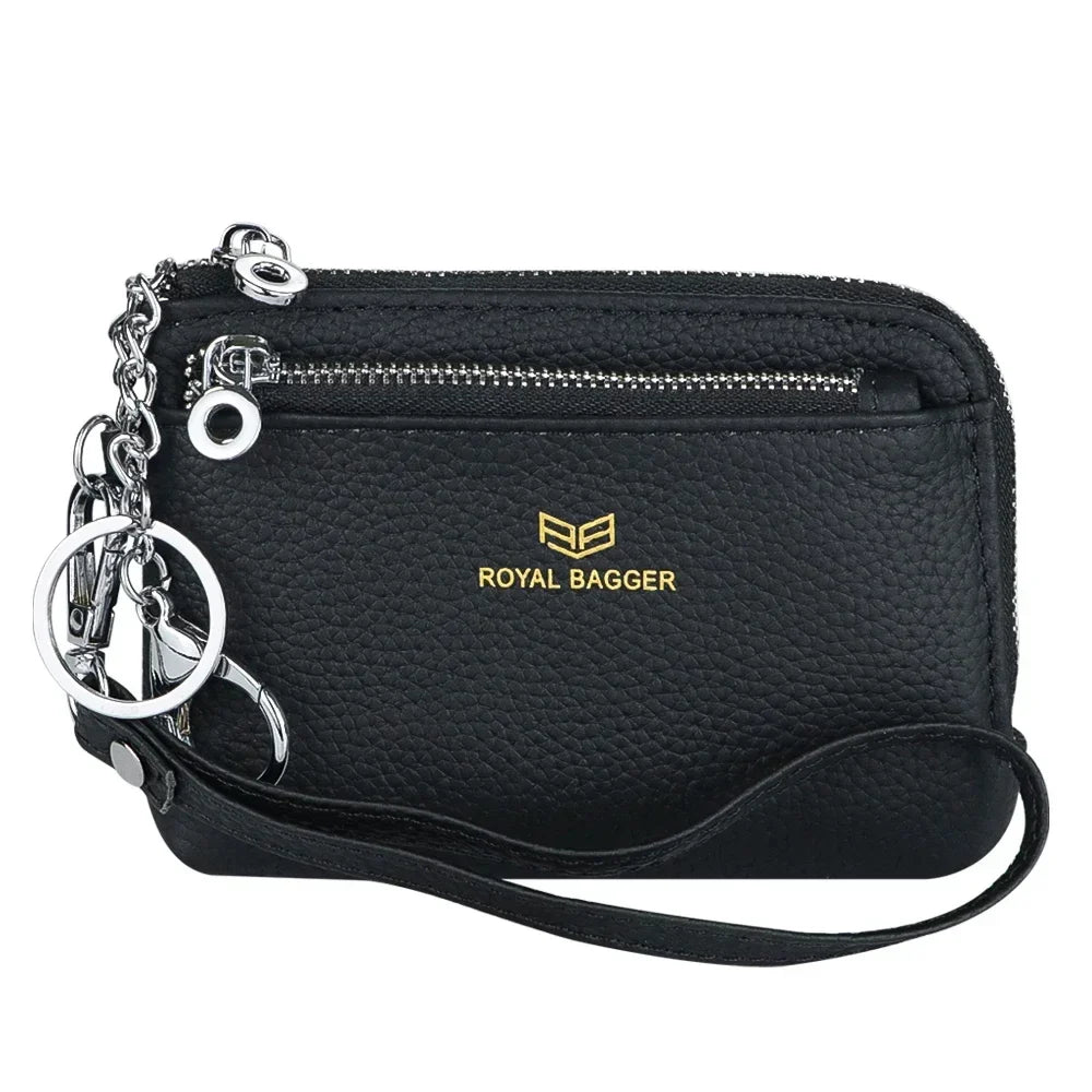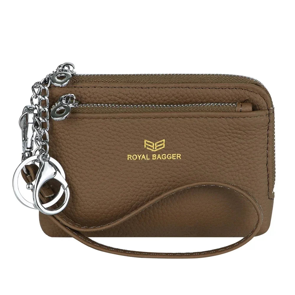 Royal Bagger RFID Coin Purse with Keychain, Genuine Leather Multi Zipper Clutch Wallet, Portable Wristlet Card Holder 1903-1