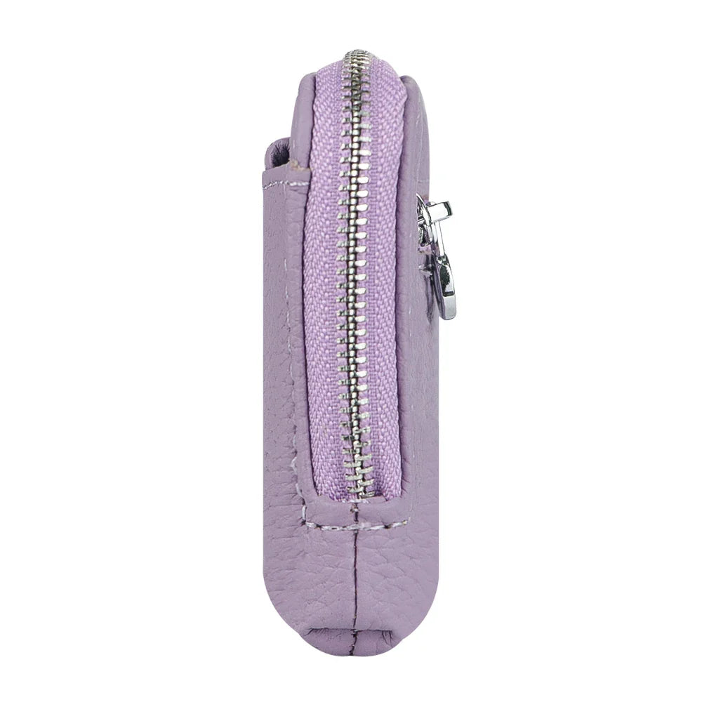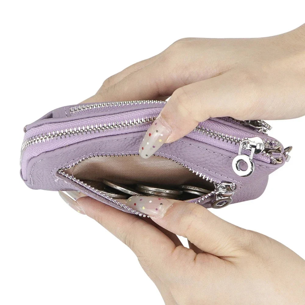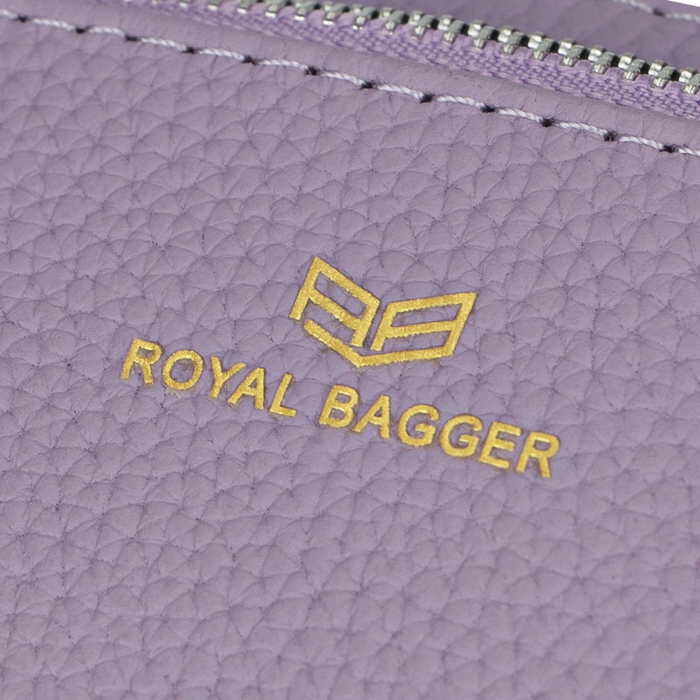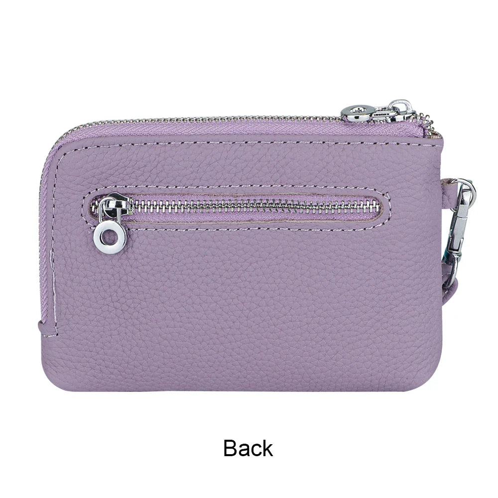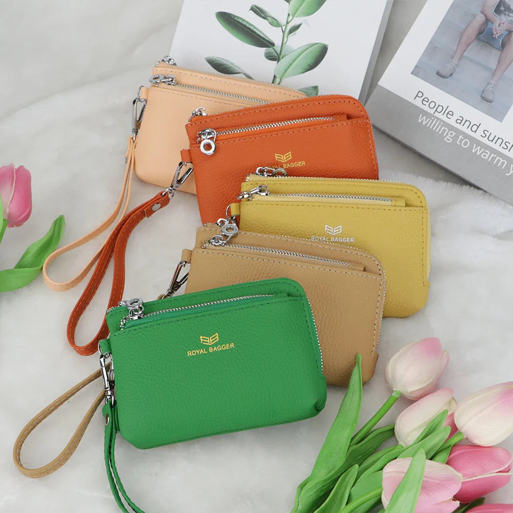 Royal Bagger RFID Coin Purse with Keychain, Genuine Leather Multi Zipper Clutch Wallet, Portable Wristlet Card Holder 1903-1