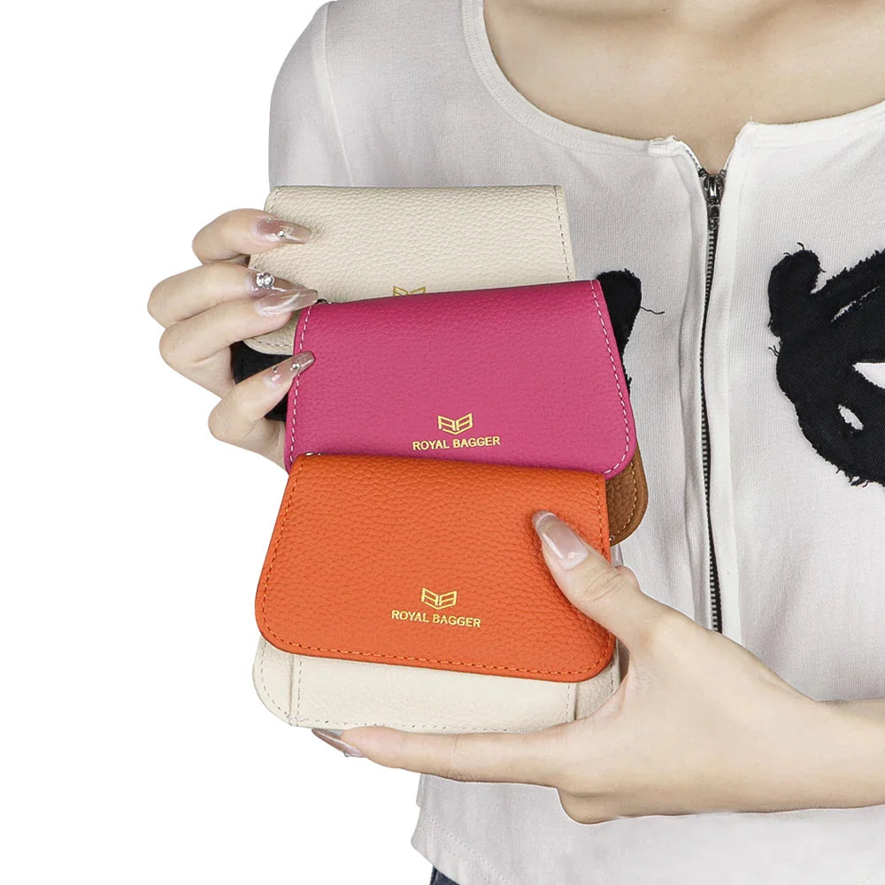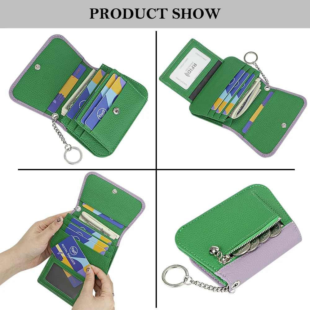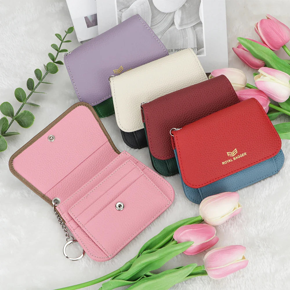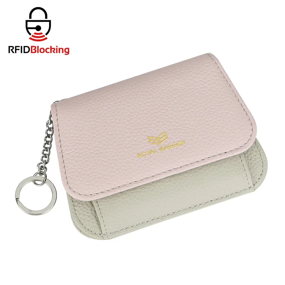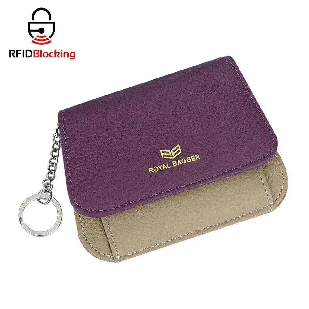 Royal Bagger Multi-card Slots Short Wallet, Genuine Leather Credit Card Holder, RFID Blocking Card Coin Purse with Keychain 1943