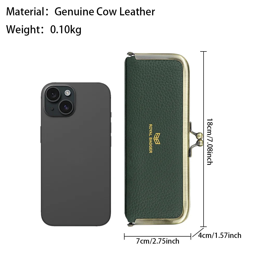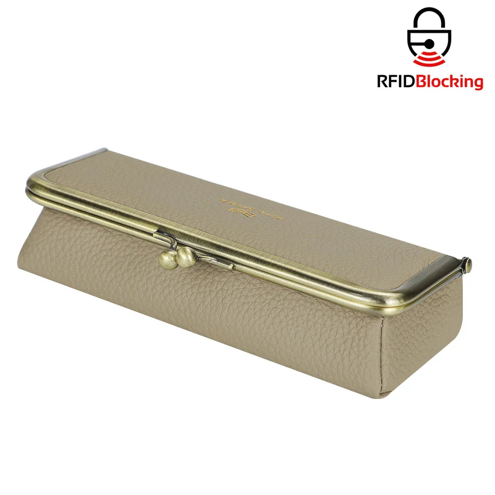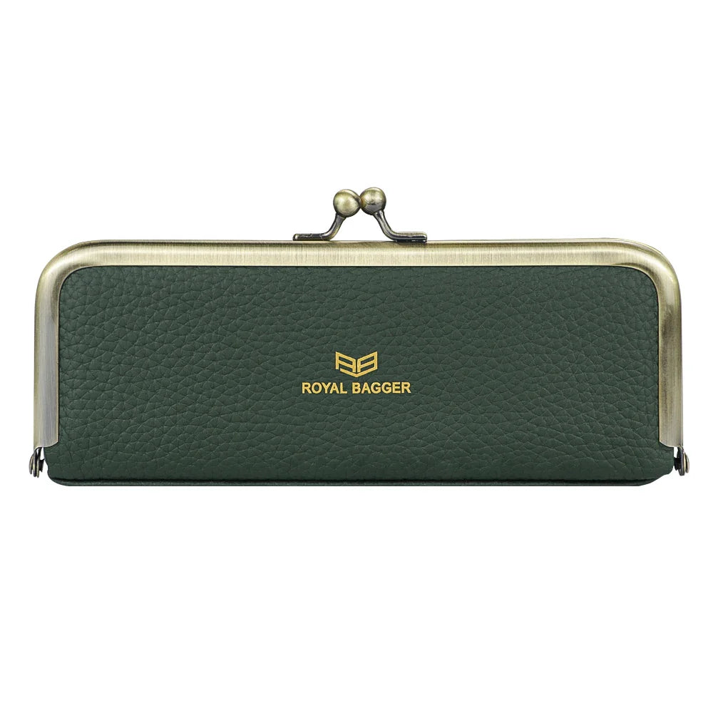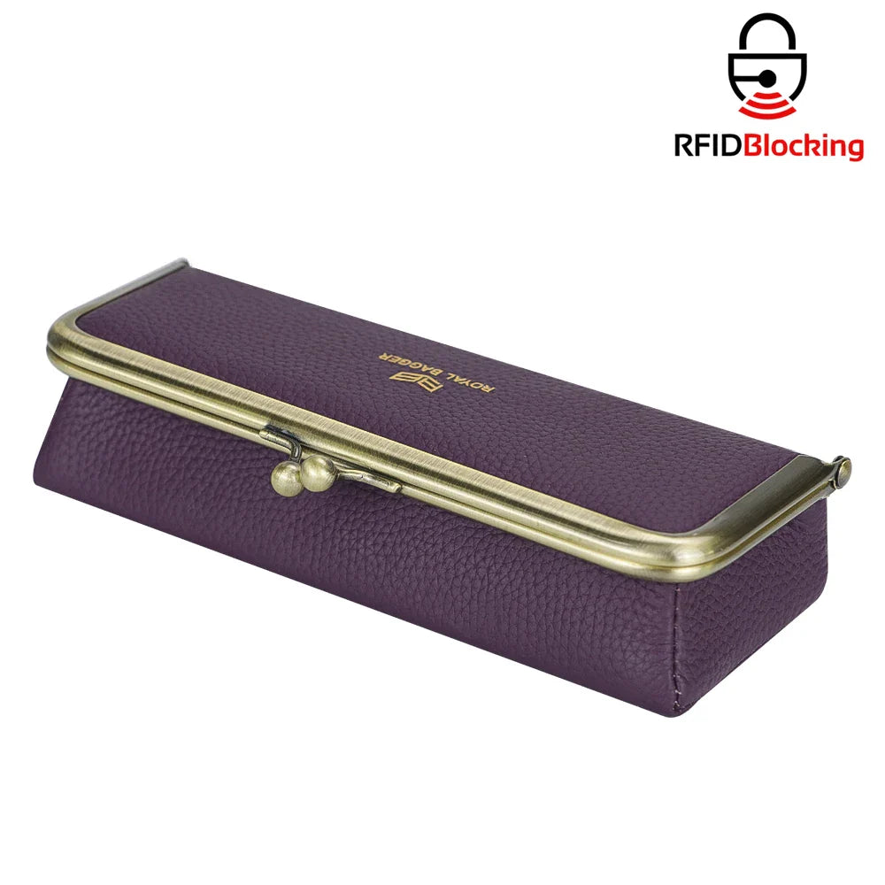 Royal Bagger Genuine Leather Fashion Glasses Case - RFID Blocking, Fashion Pencil Bag with Kiss Lock, Coin Purse for Women 2135