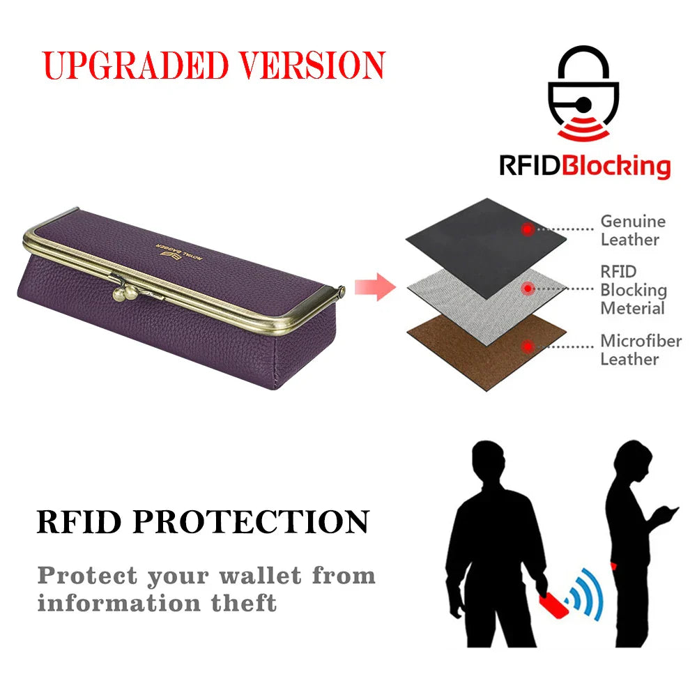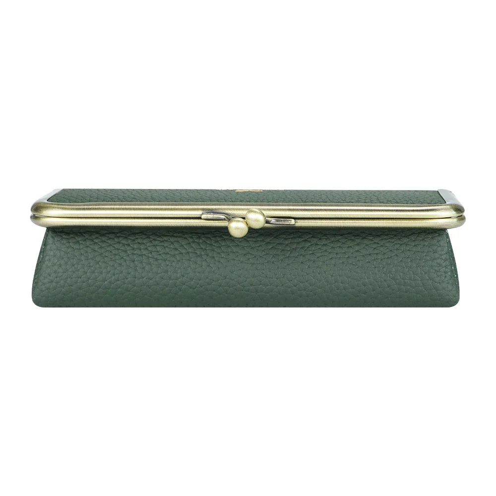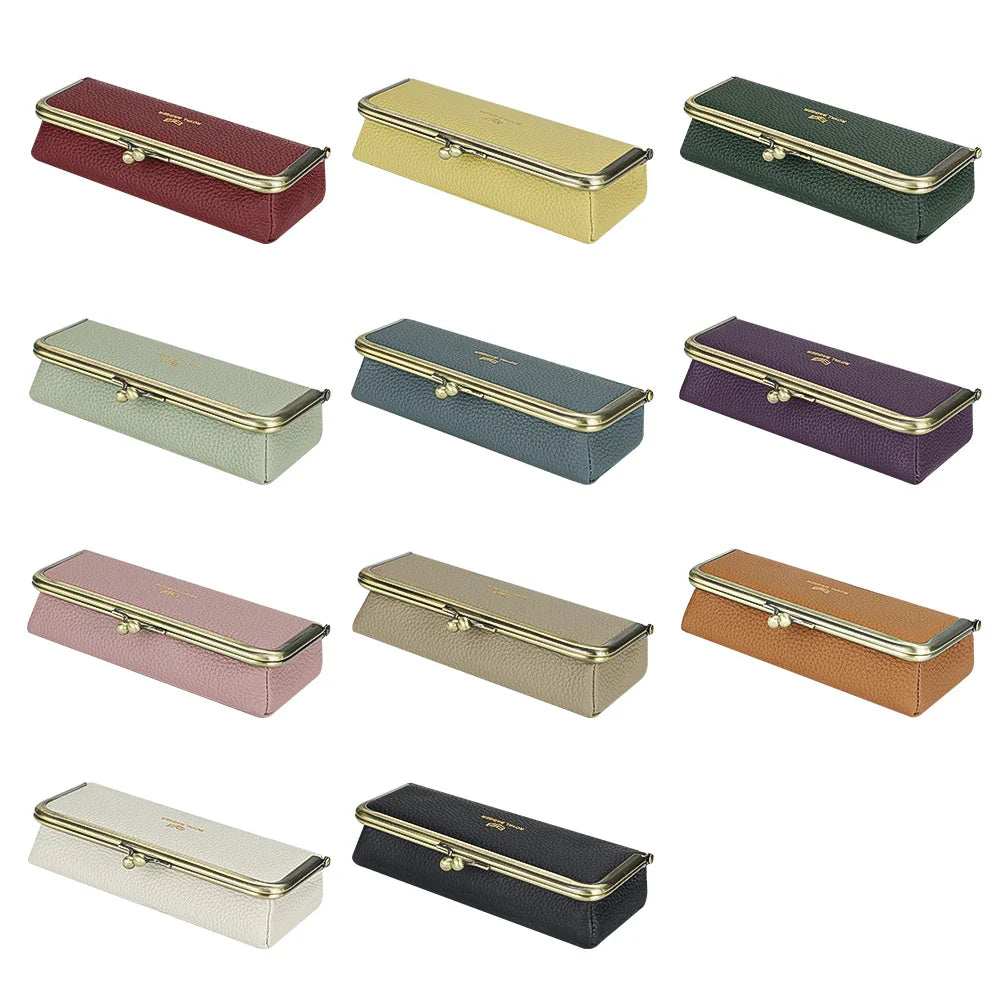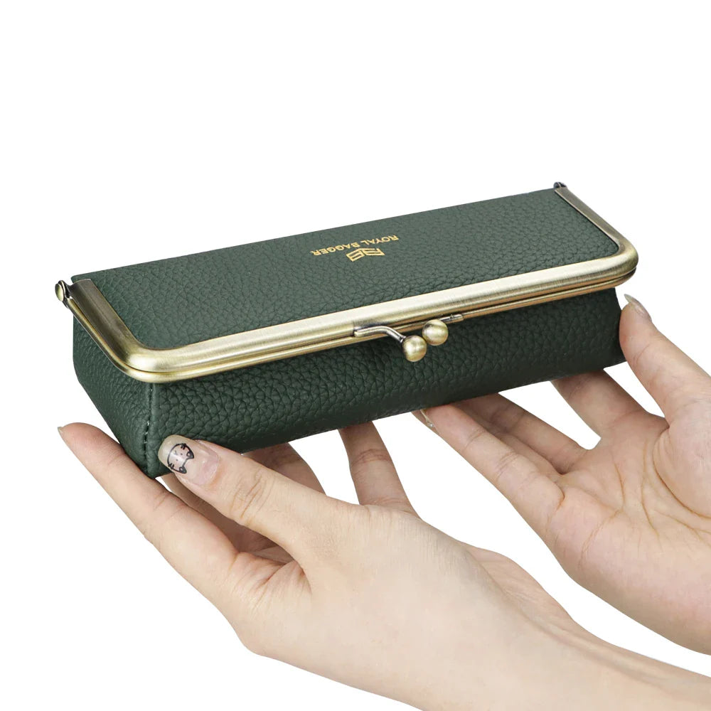 Royal Bagger Genuine Leather Fashion Glasses Case - RFID Blocking, Fashion Pencil Bag with Kiss Lock, Coin Purse for Women 2135