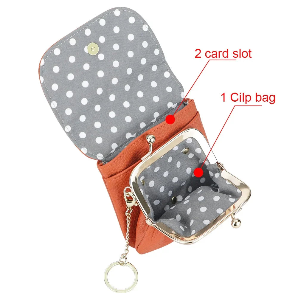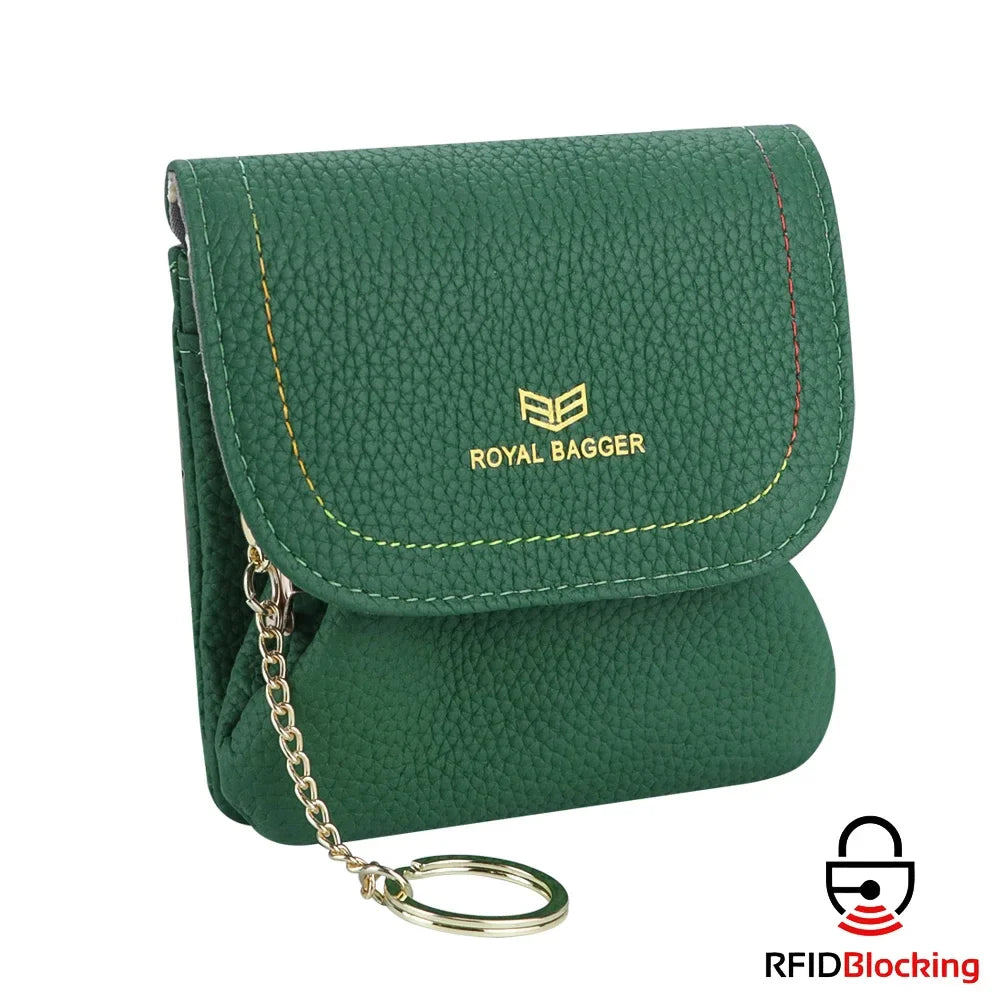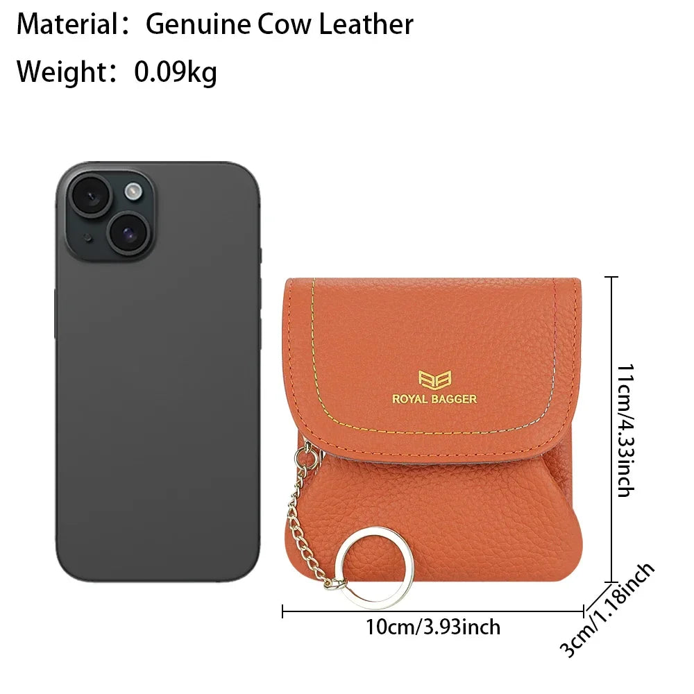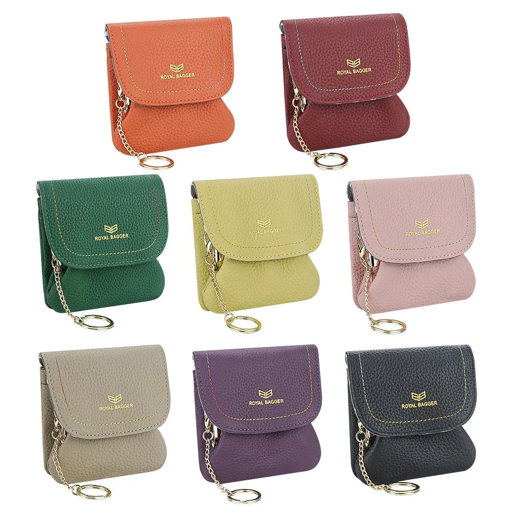 Royal Bagger Kiss Lock Coin Purse for Women RFID Simple Card Holder with Removable Keychain Genuine Leather Storage Bag 2622