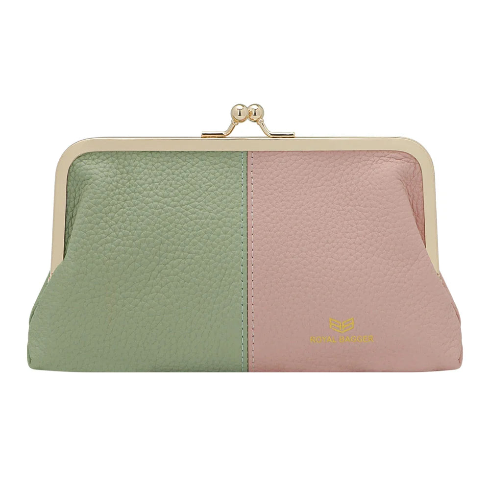 Royal Bagger RFID Blocking Genuine Leather Clutch Purse for Women, Elegant Evening Wallet with Kiss Lock, Phone Holder 2868