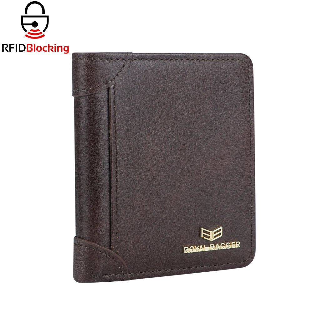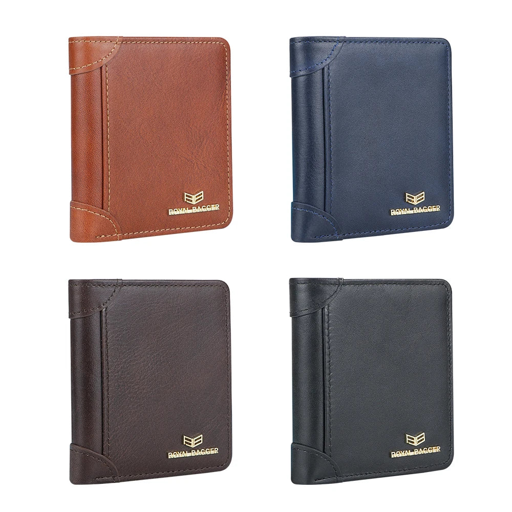 Royal Bagger RFID Vintage Short Wallets for Men Genuine Leather Card Holder Simple Thin Bifold Wallet 3001