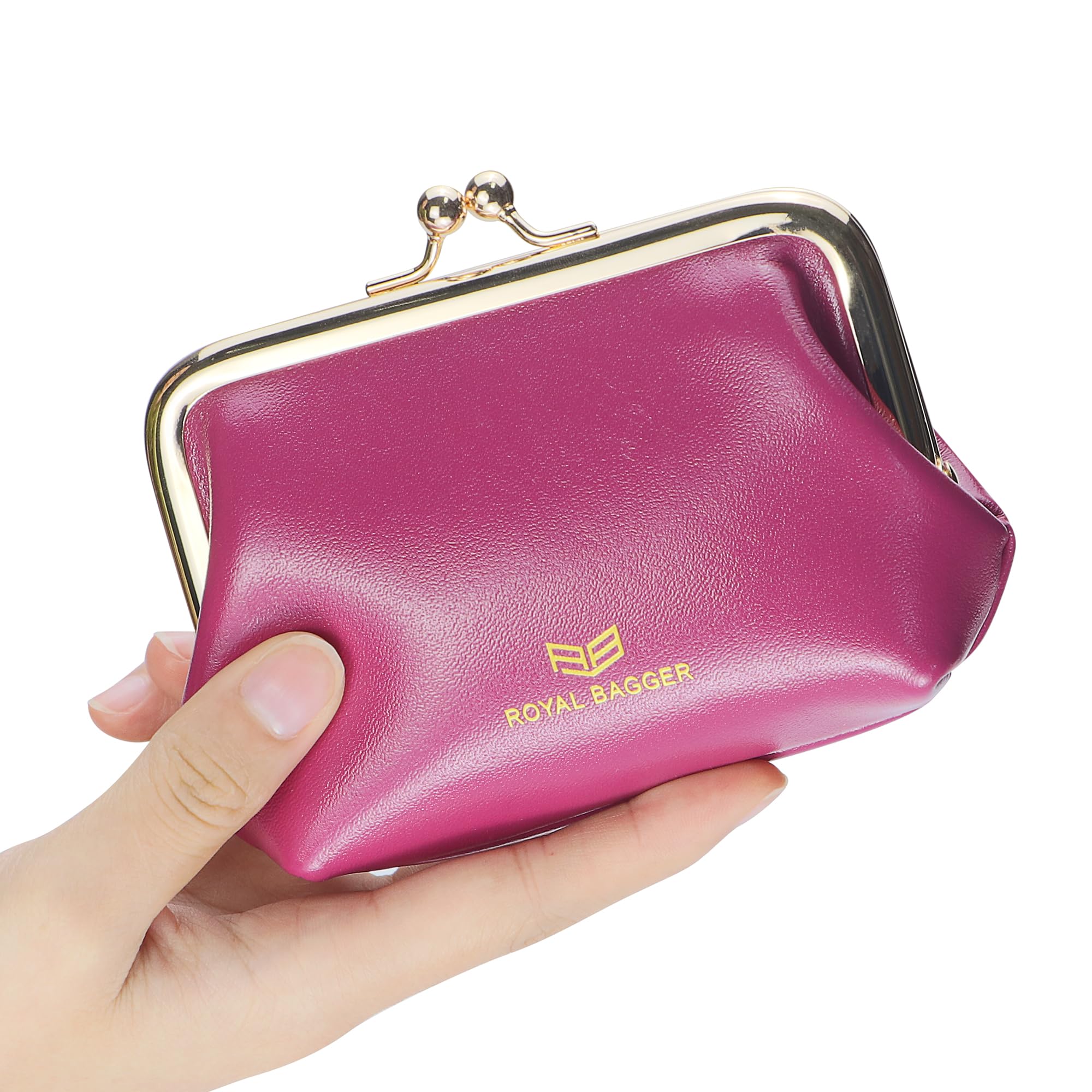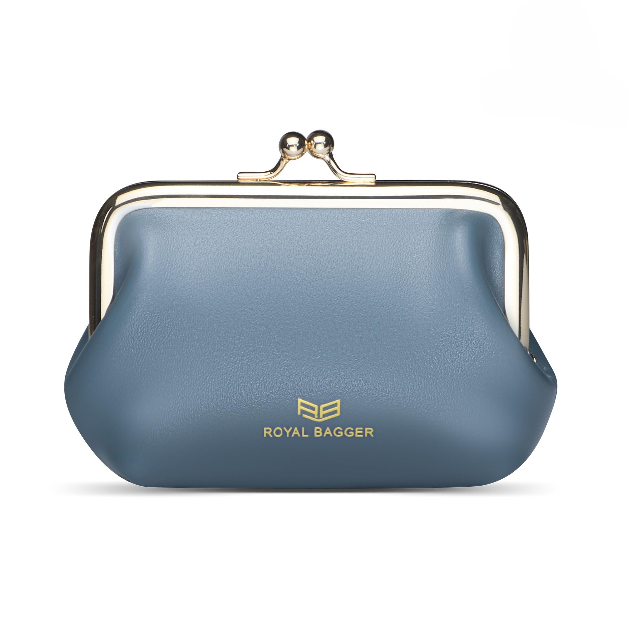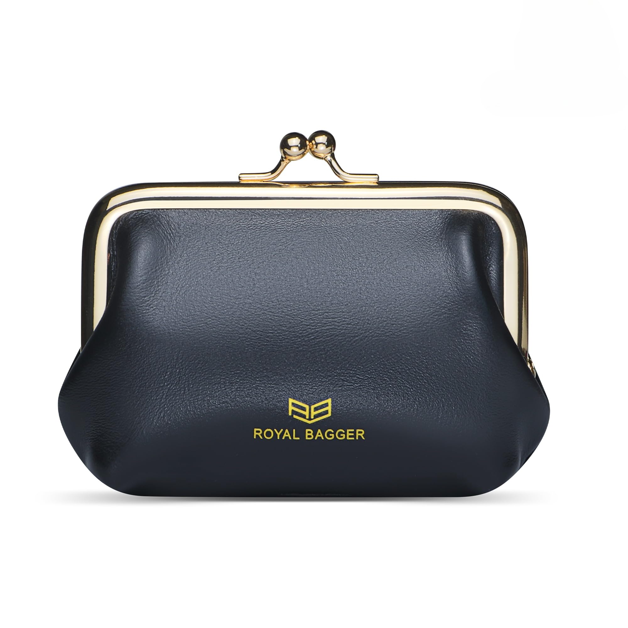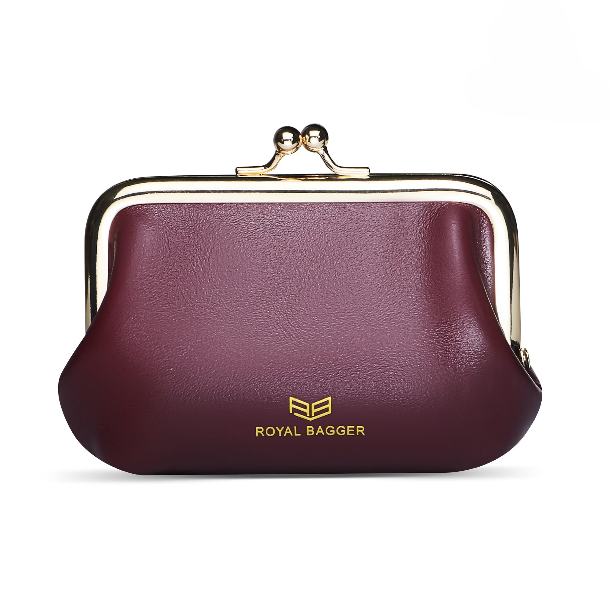 Royal Bagger Retro Kiss Lock RFID Card Holder Coin Purse for Women Genuine Cow Leather Small Lipstick Bag Fashion Mini Key Chain Wallet 3243