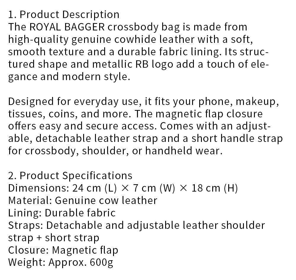 Royal Bagger Crossbody Box Bag for Women, Genuine Cowhide Leather, Elegant Small Shoulder Purse, Compact Daily Handbag 3245
