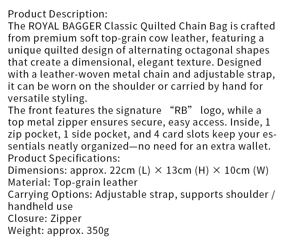 Royal Bagger Classic Quilted Chain Shoulder Bag for Women, Genuine Soft Cow Leather Underarm Purse, Fashion Handbag 3263