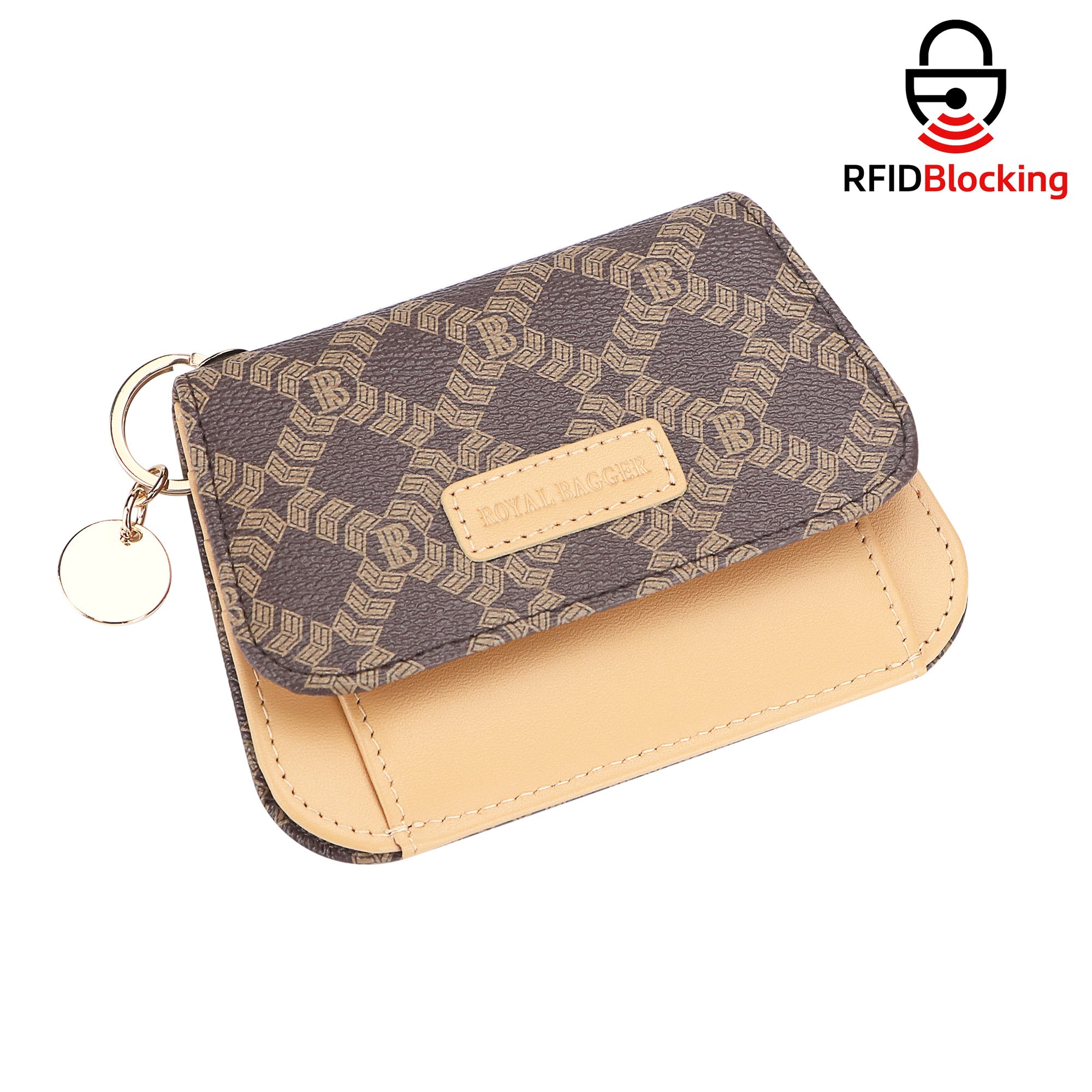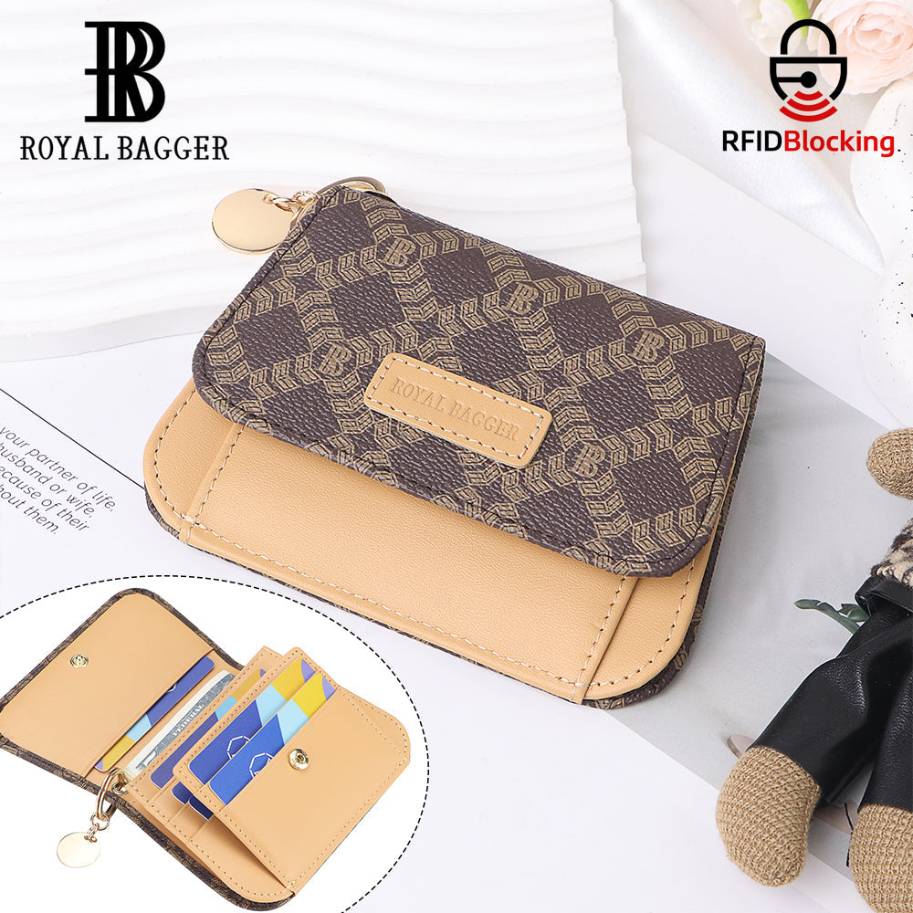 Royal Bagger RFID Women's Multi-Card Slots Wallet – Signature Coated Canvas & Vegetable-Tanned Cowhide Leather Credit Card Holder, Coin Purse with Keychain 3443