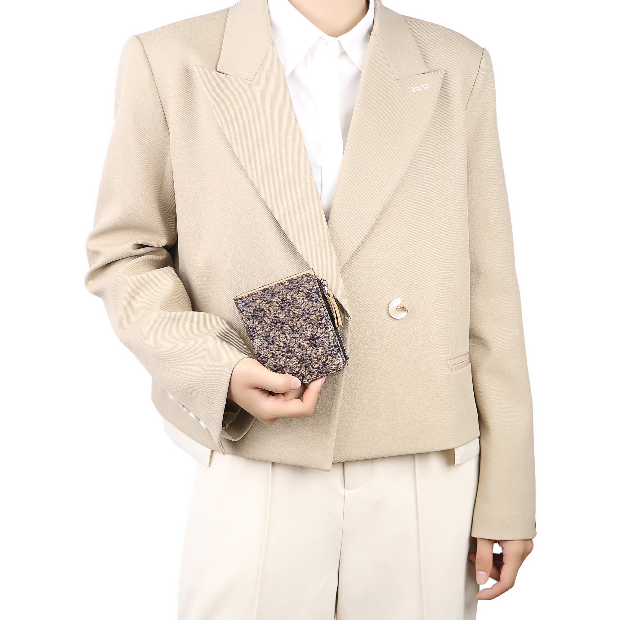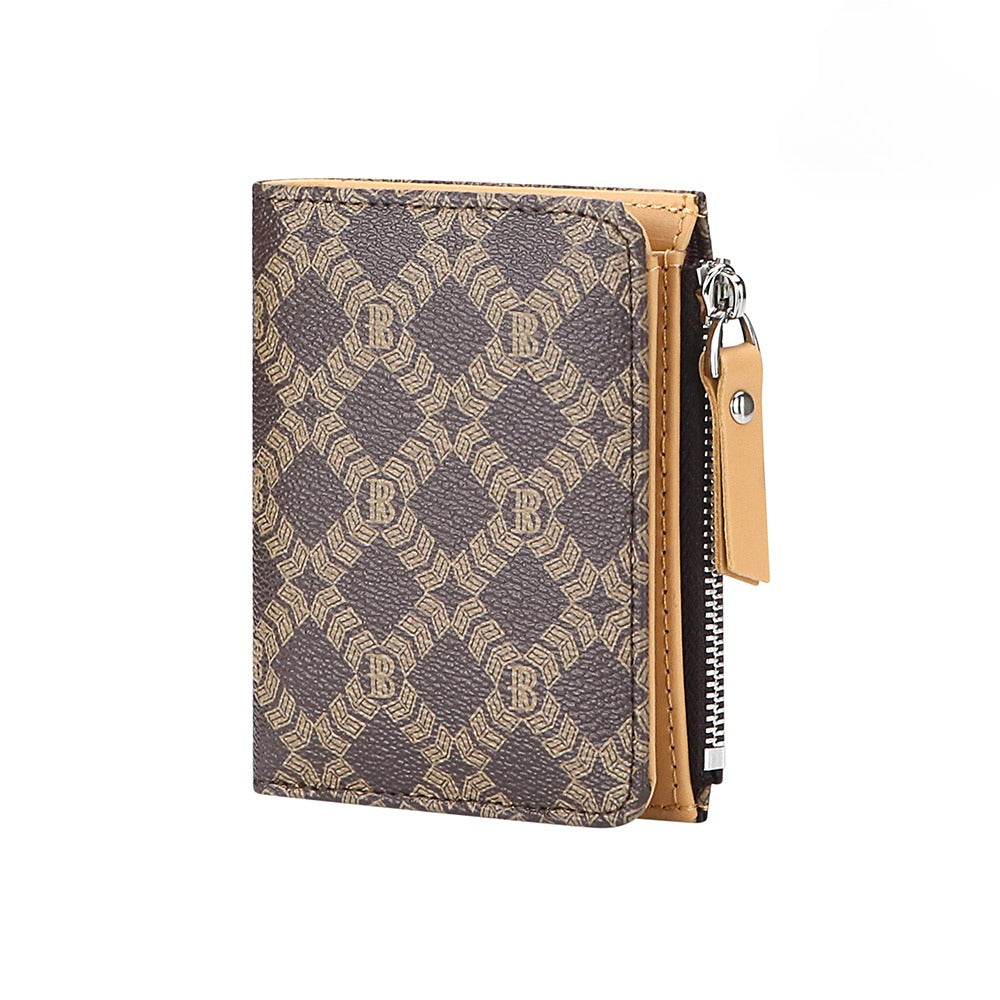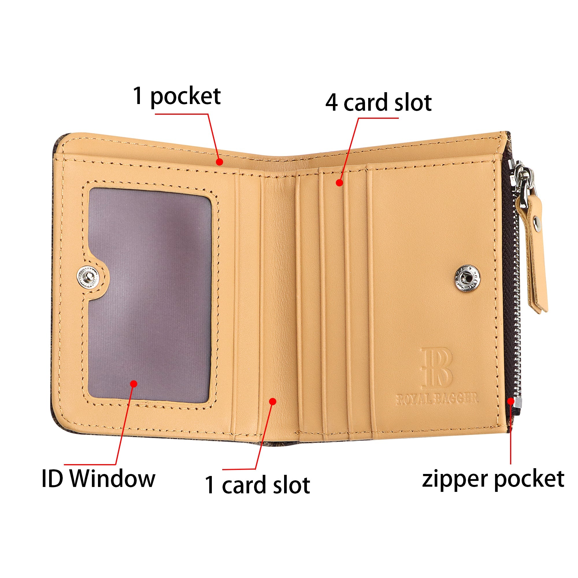 Royal Bagger Signature Coated Canvas & Vegetable-Tanned Cowhide Leather Short Wallet - RFID Blocking, Slim Bifold Coin Purse for Women, Retro & Simple Design 4201