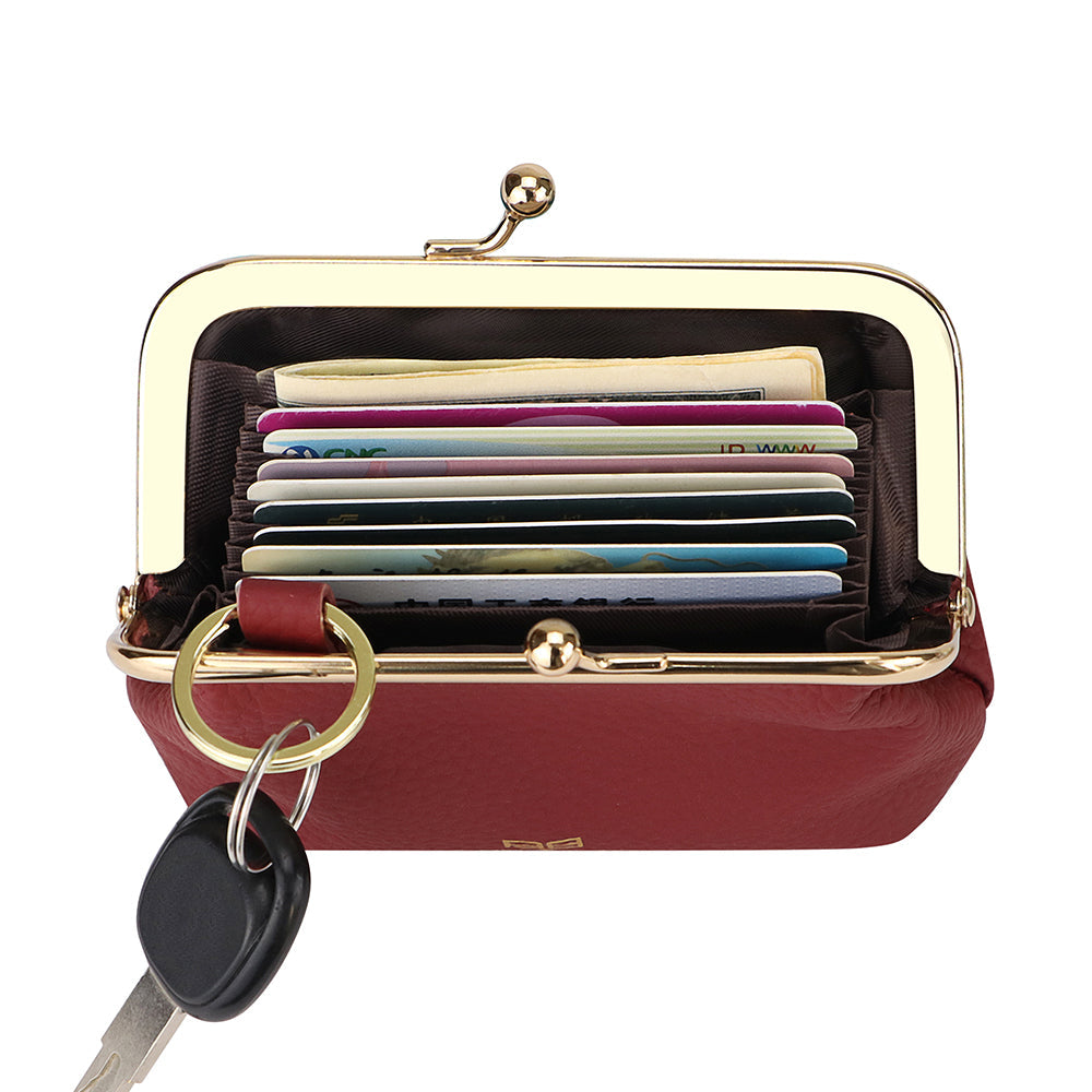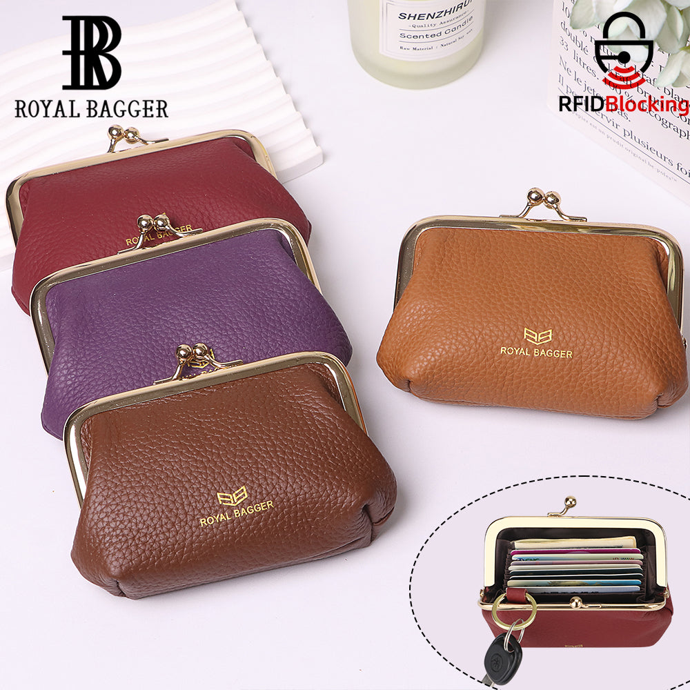 Royal Bagger Kiss Lock RFID Card Holder & Coin Purse for Women – Genuine Cow Leather Mini Wallet with Key Chain, Small Fashion Storage Bag 4243
