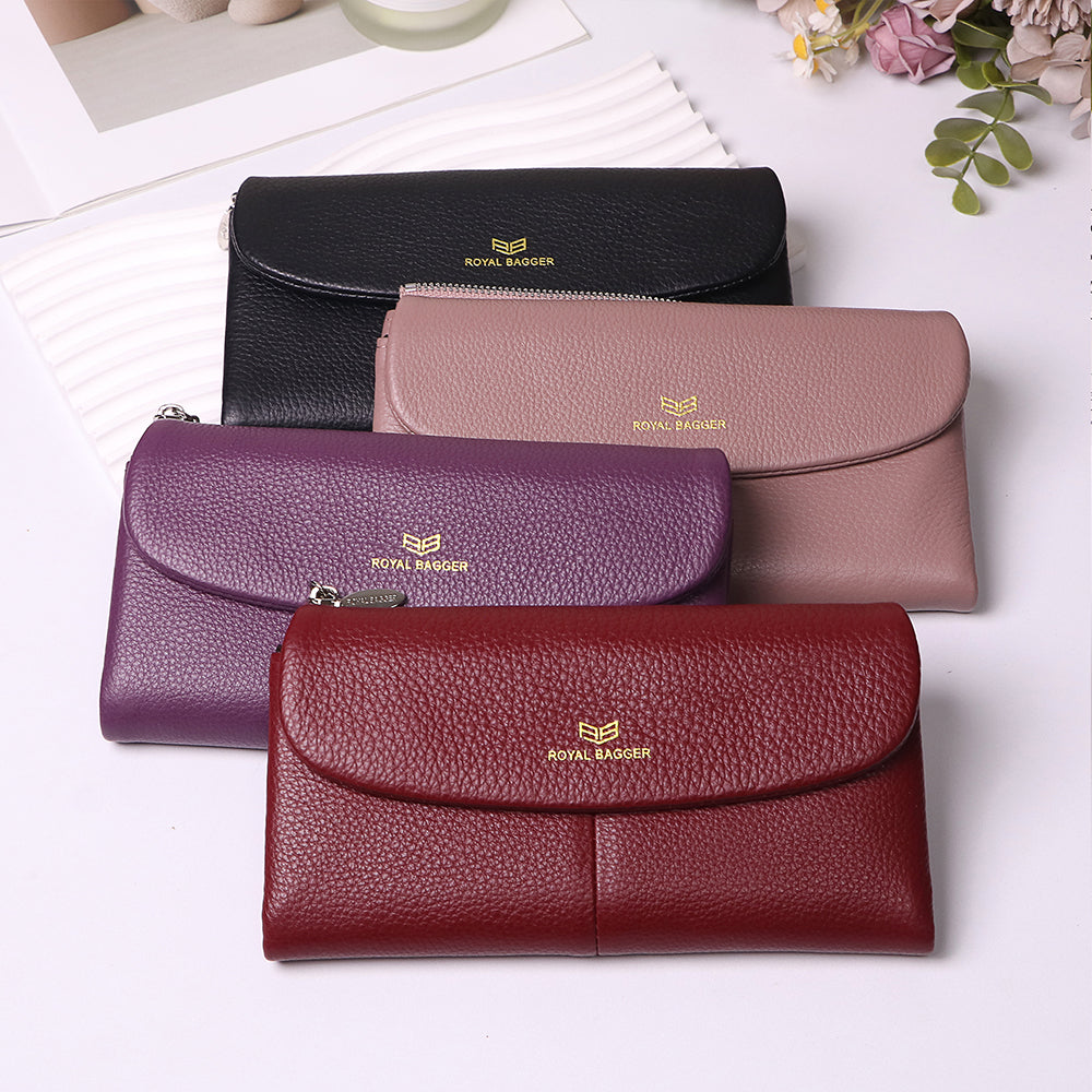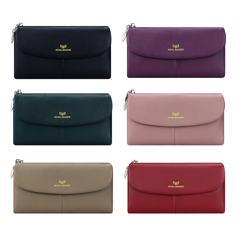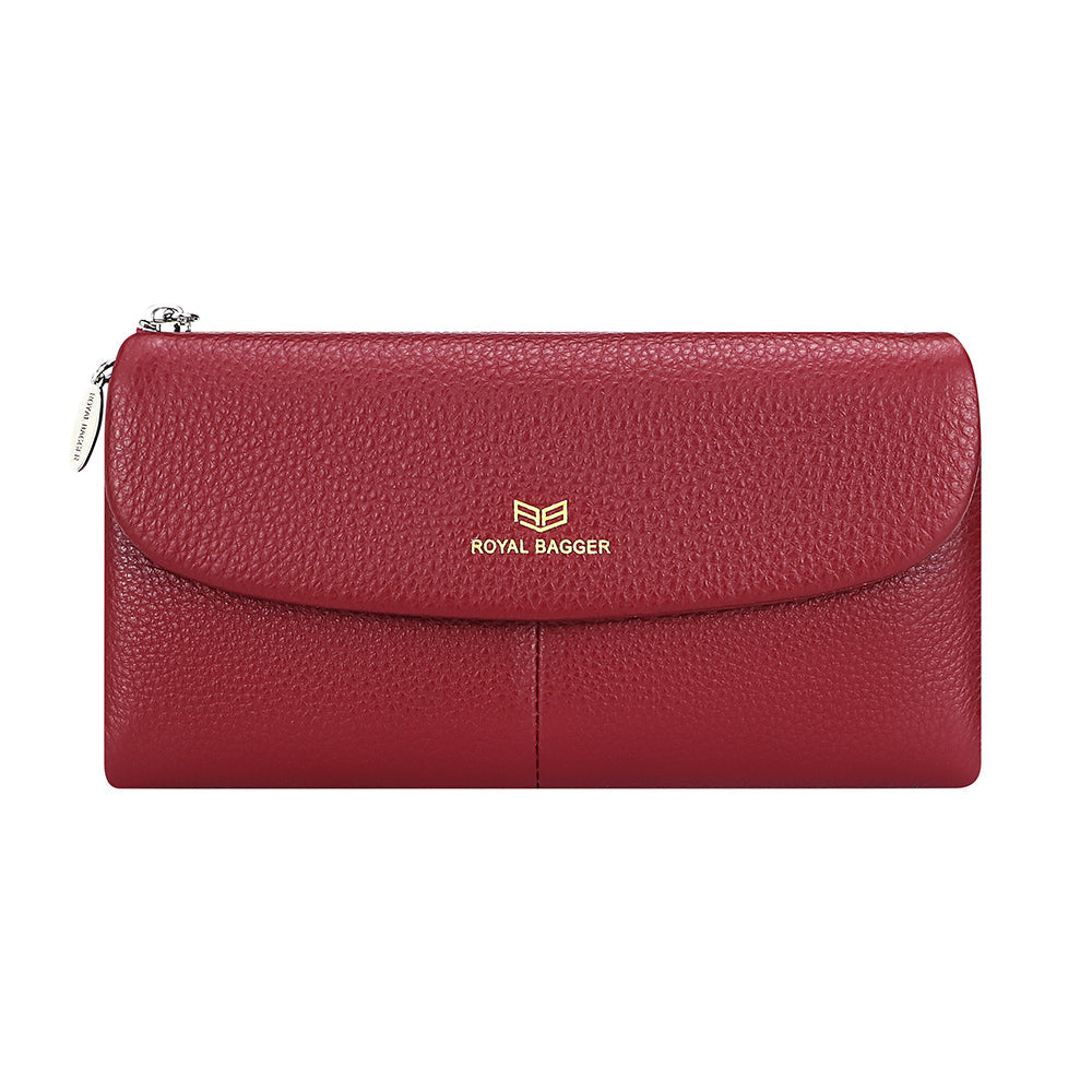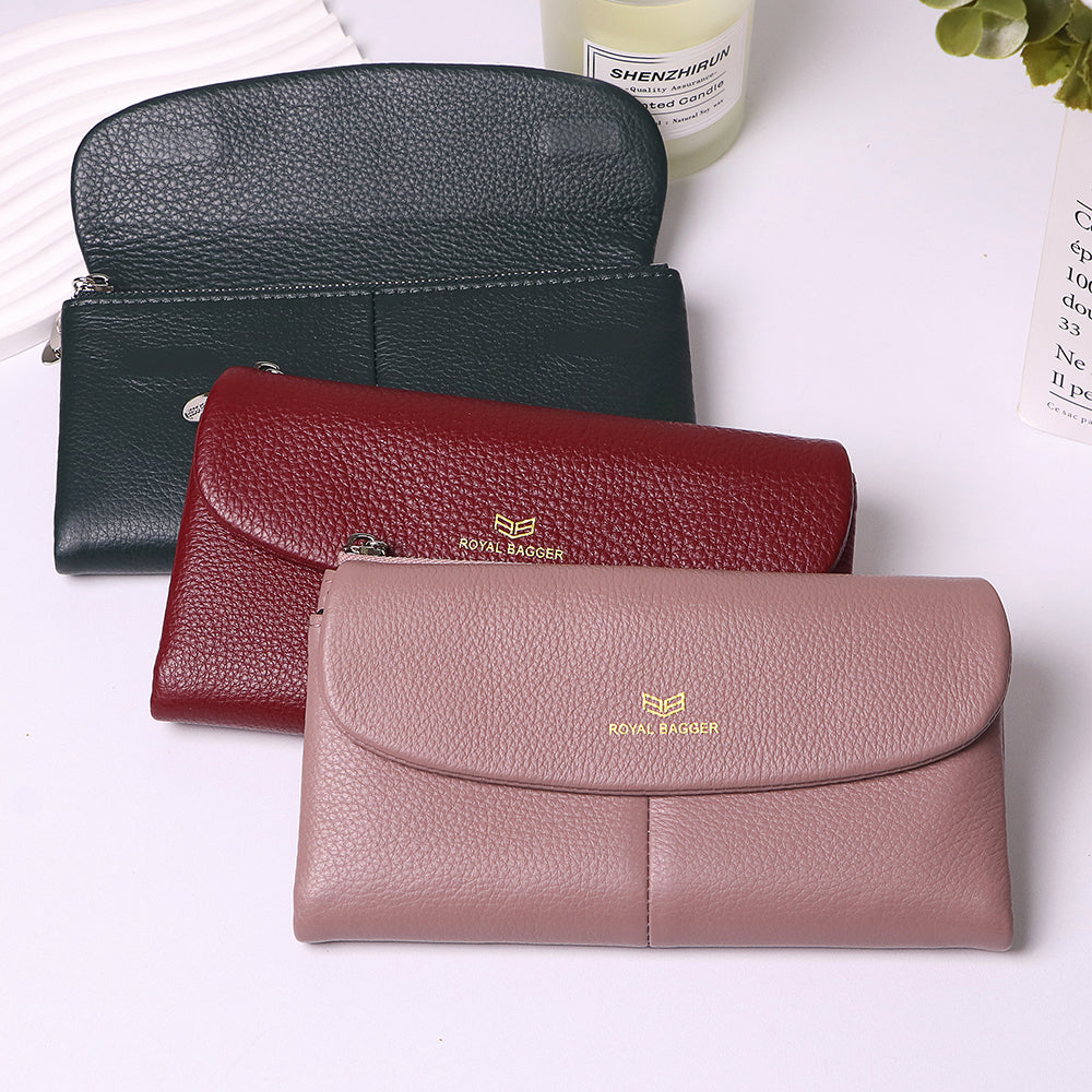 Royal Bagger Women’s RFID Blocking Long Wallet – Genuine Cow Leather Trifold Purse with Multi-Card Slots & Magnetic Closure 5063