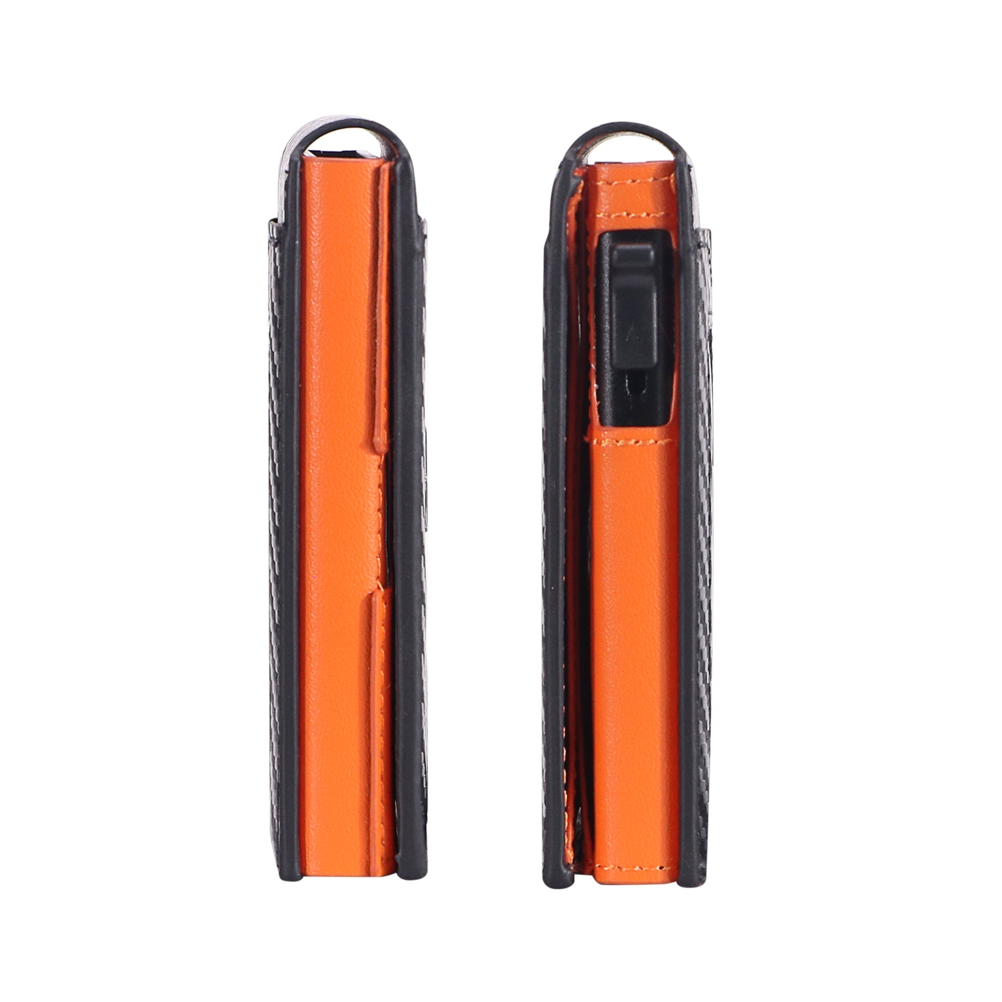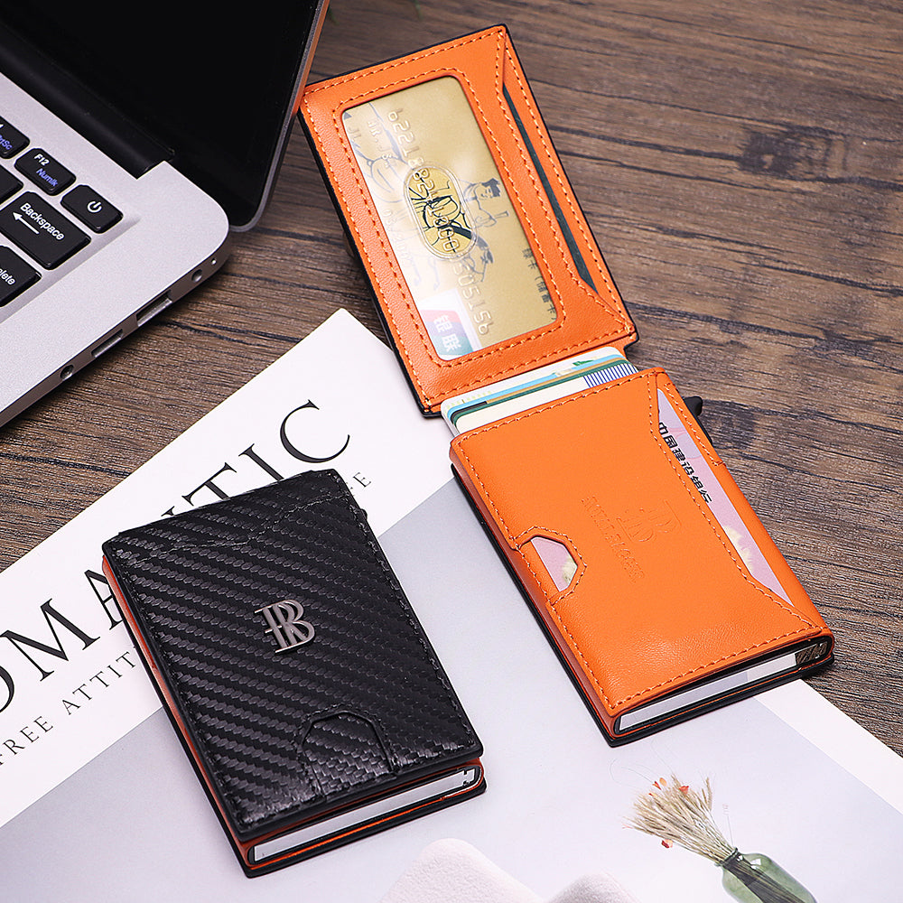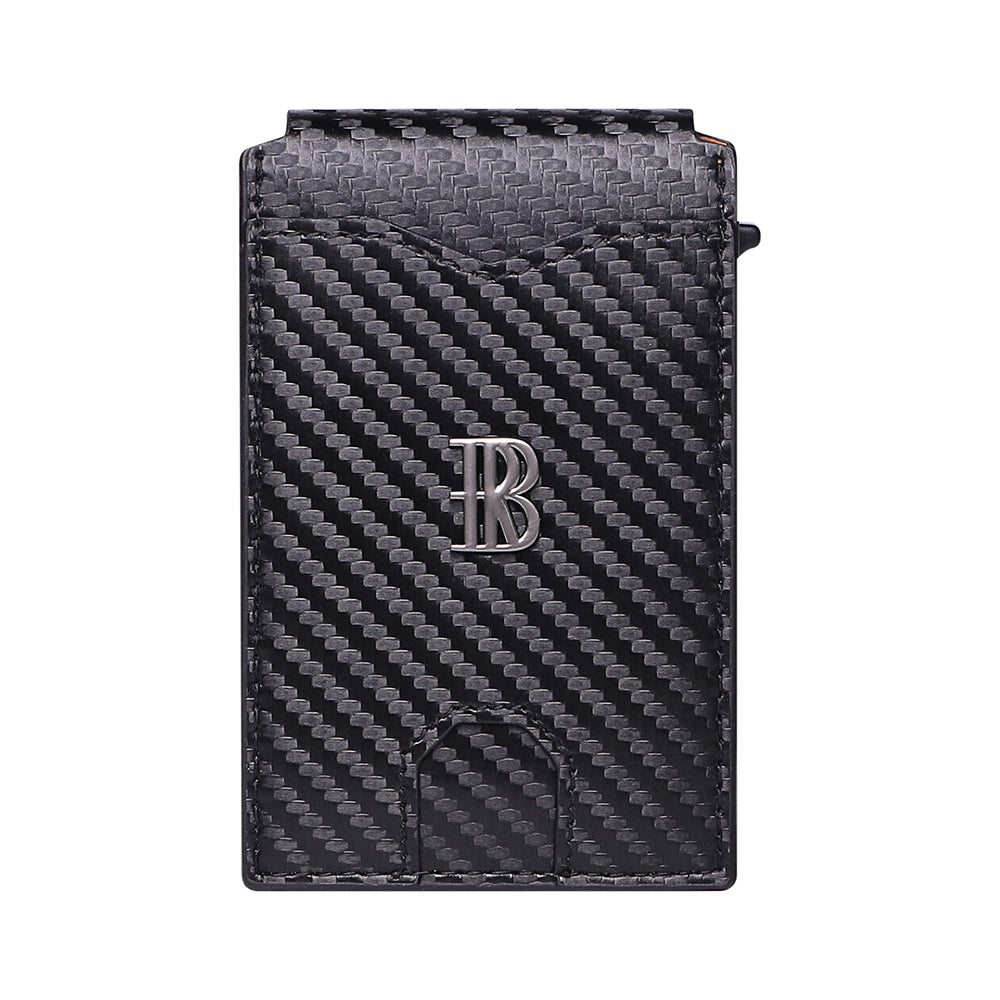 This men's travel wallet features a sleek, minimalist design crafted from durable carbon fiber and high-quality leather, offering both sophistication and strength. Equipped with RFID-blocking technology, it protects your personal information from unauthorized scans. Measuring just 2.55 x 0.78 x 3.93 inches, it’s compact and easy to carry, fitting seamlessly into pockets or bags.