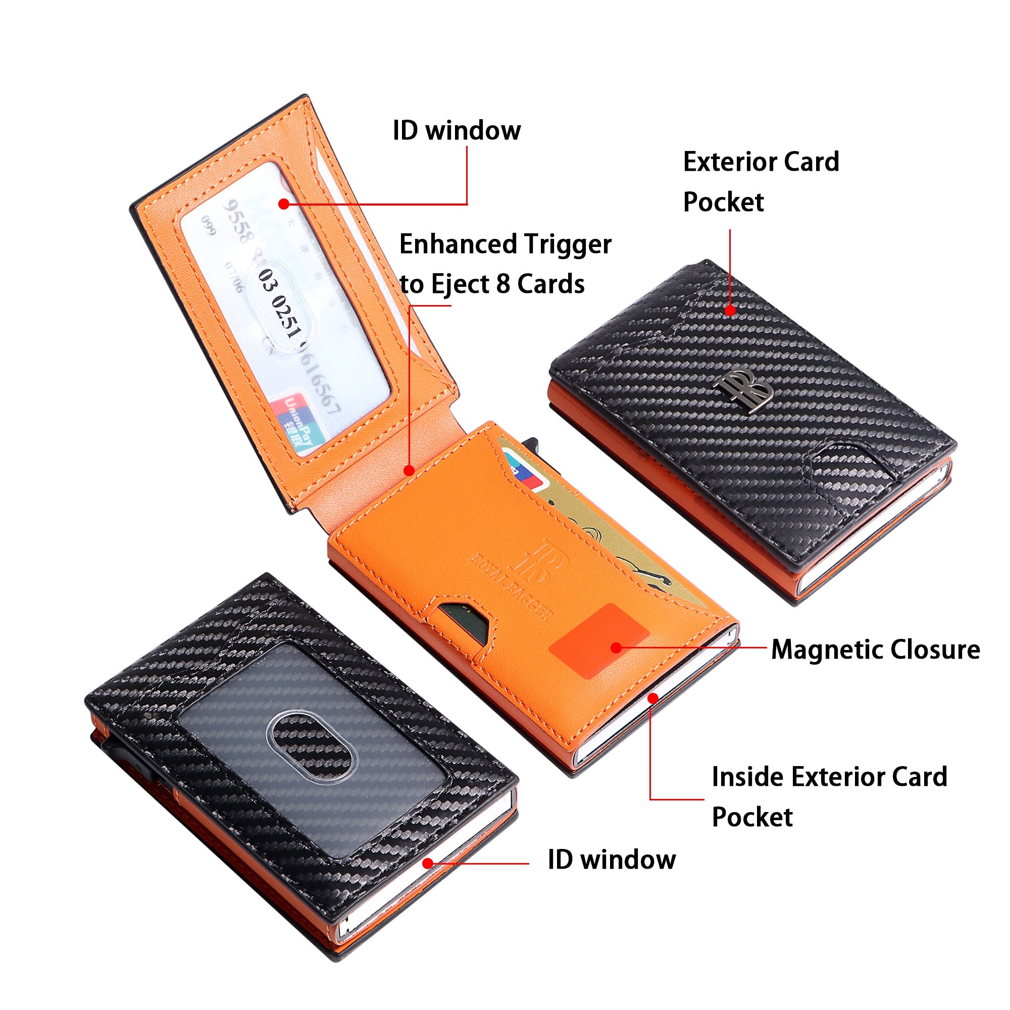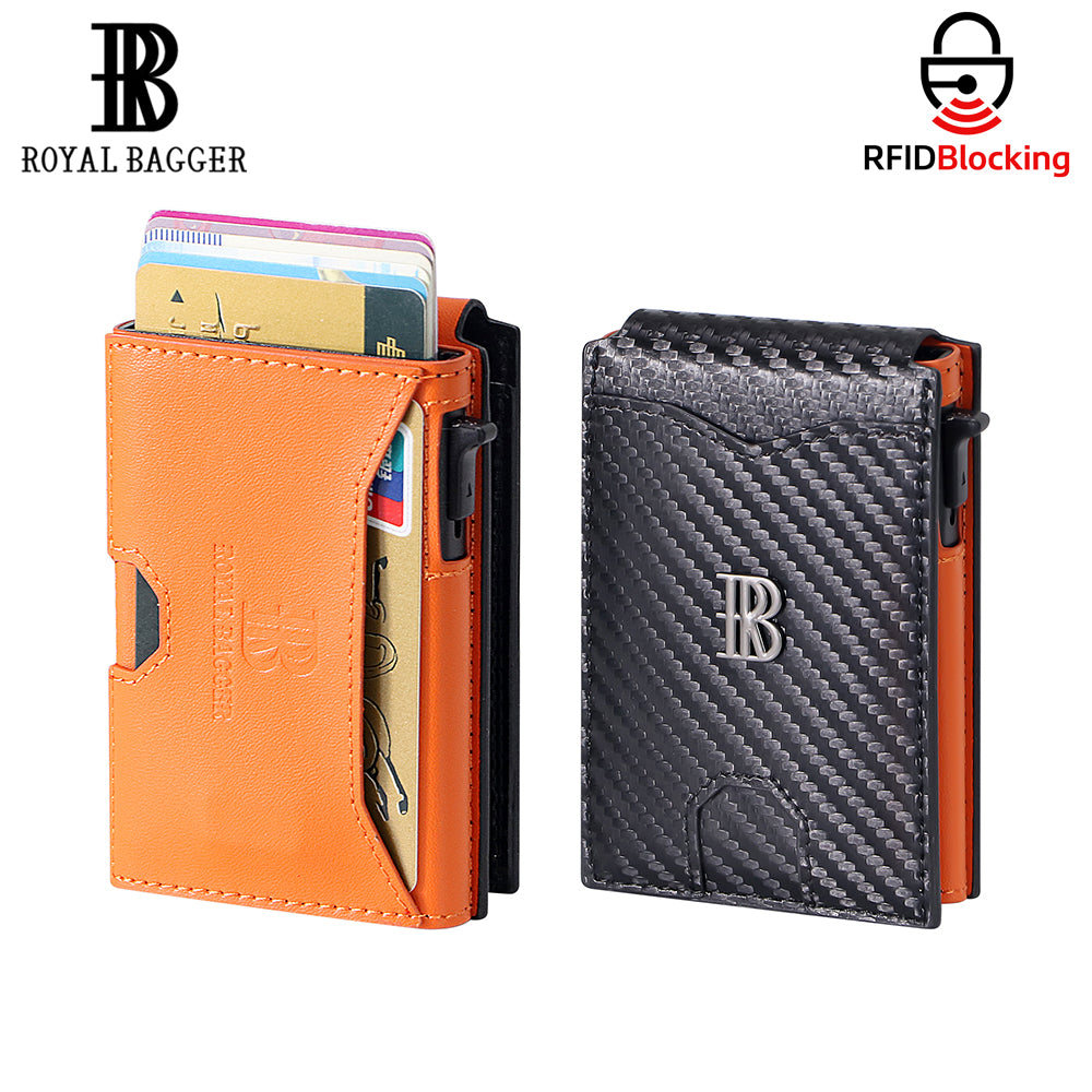 Royal Bagger Men’s Minimalist Pop-Up Metal & Genuine Cow Leather Card Holder Case, RFID Blocking Slim Wallet with Magnetic Closure, Lightweight Carbon Fiber Travel Wallet 5246