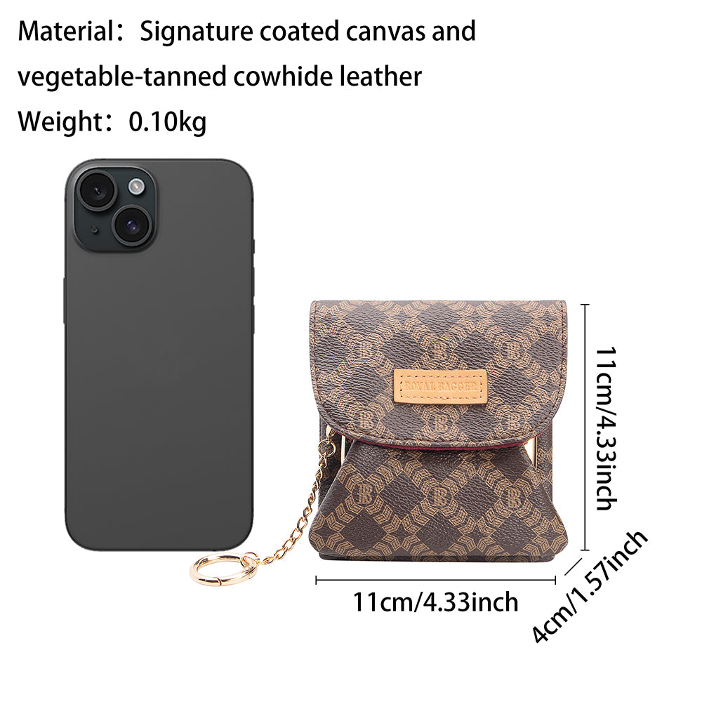 The Royal Bagger RFID Coin Purse & Card Holder for women offers a stylish and functional solution for organizing your essentials. Made from a combination of premium coated canvas and vegetable-tanned cowhide leather, this elegant storage bag features RFID protection to keep your sensitive information safe. It includes a removable keychain, making it versatile for everyday use or travel. Compact yet spacious, it’s perfect for carrying coins, cards, and small items, with a signature design that adds a touch of luxury to your daily accessories.