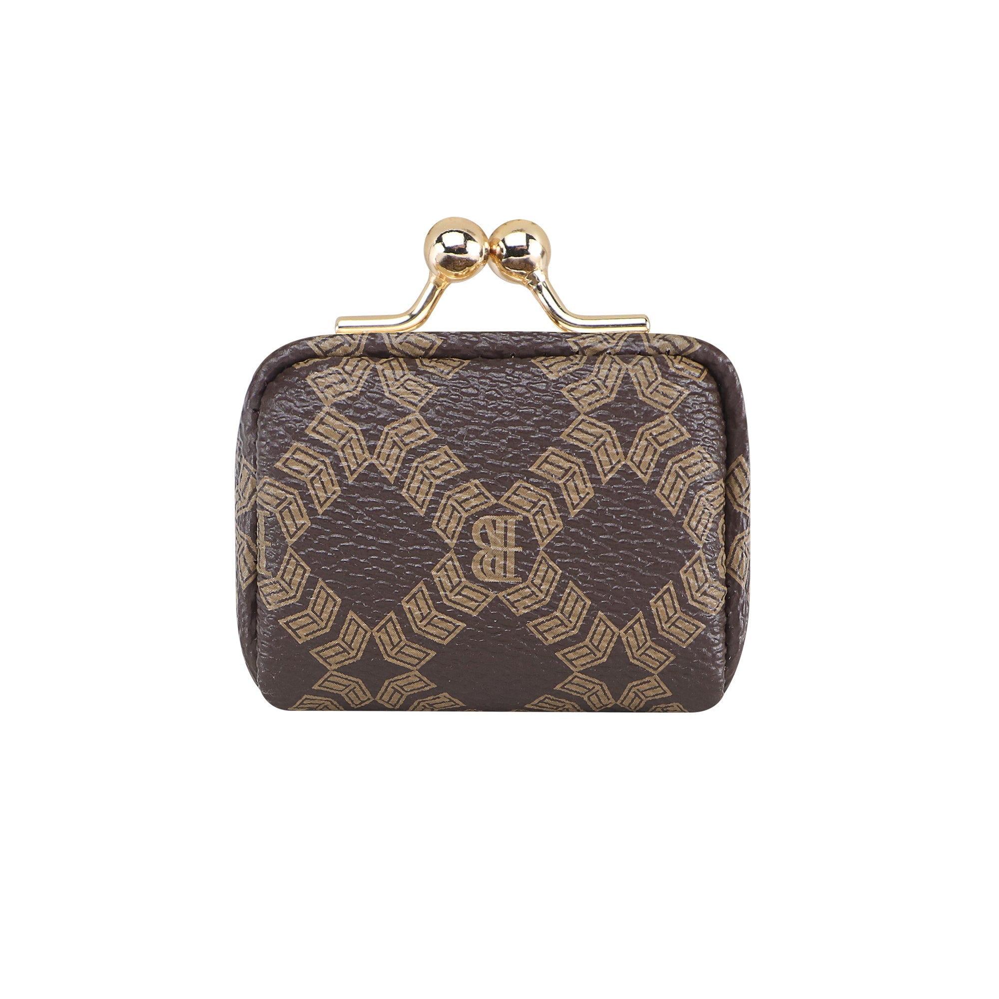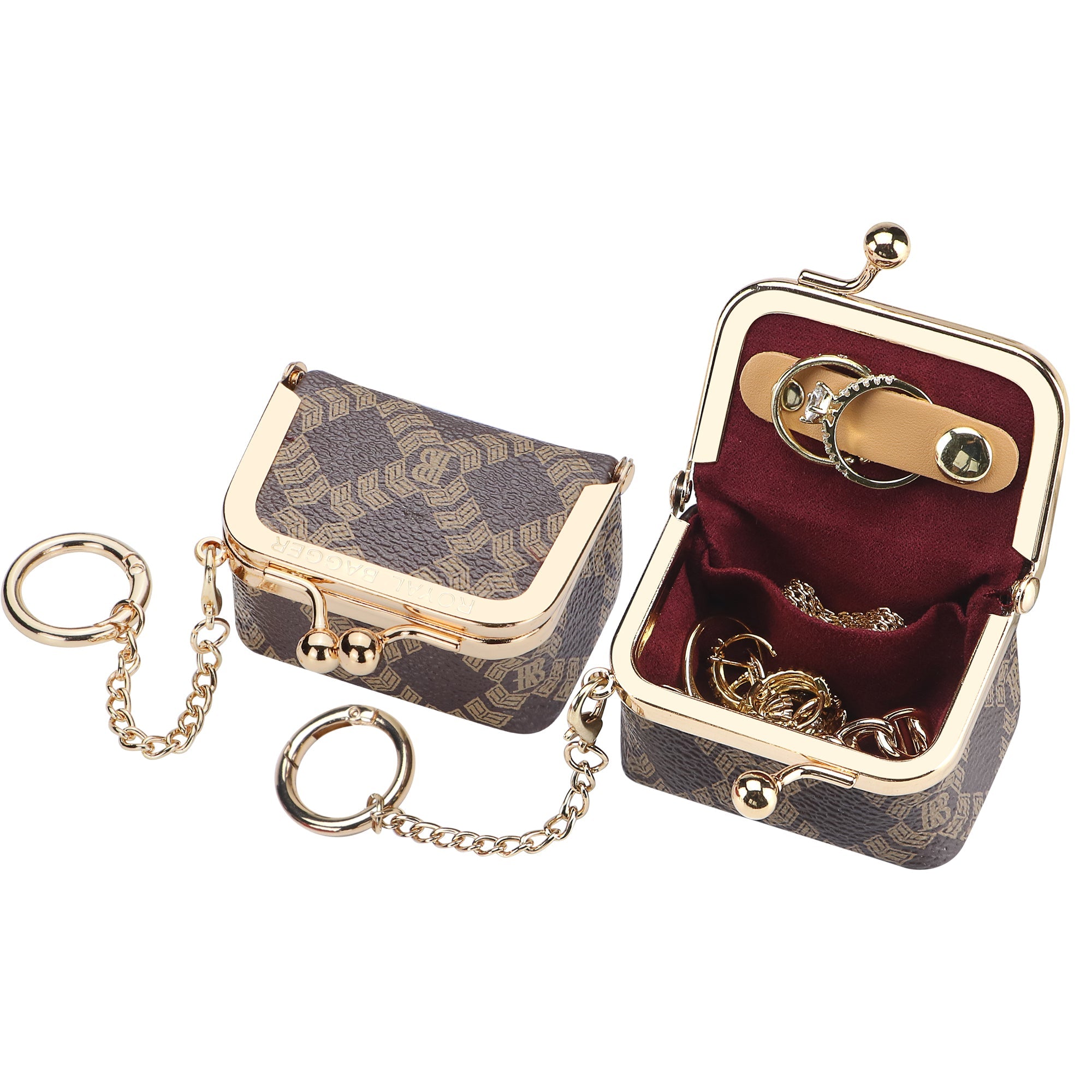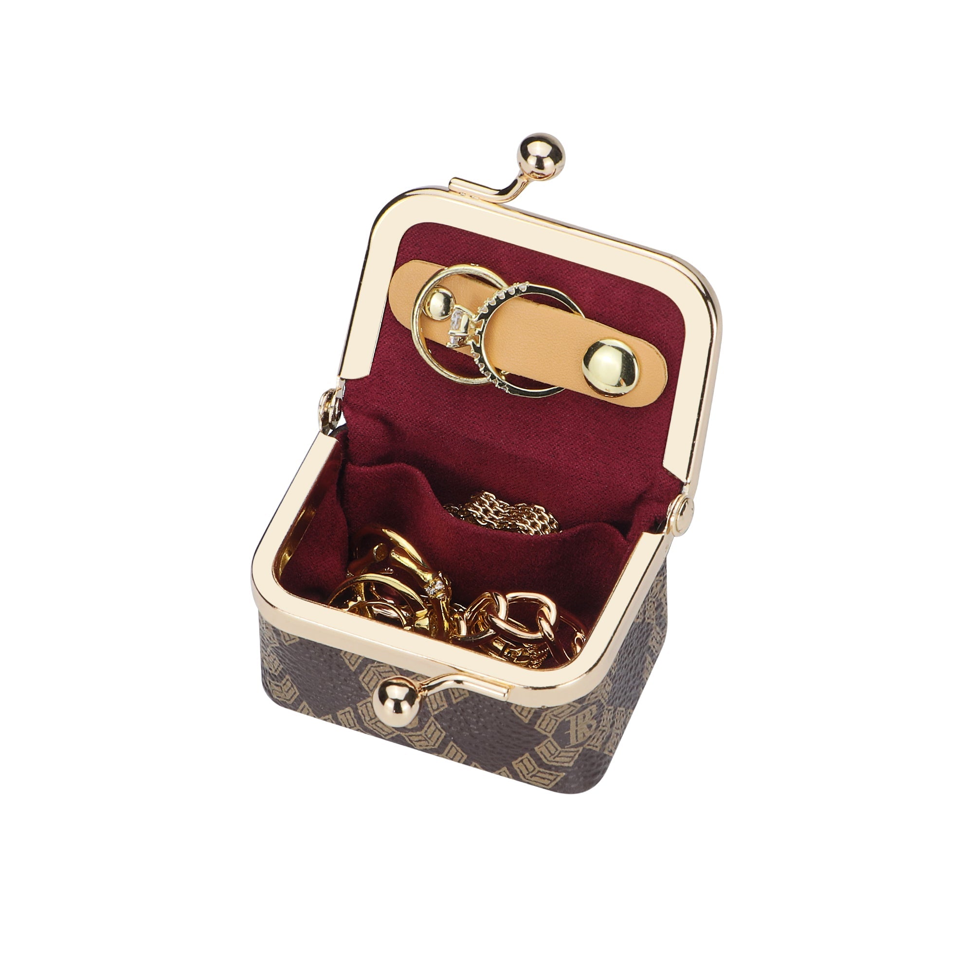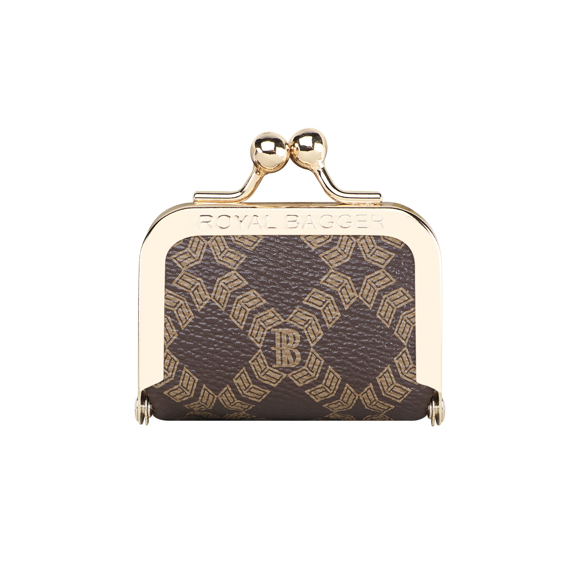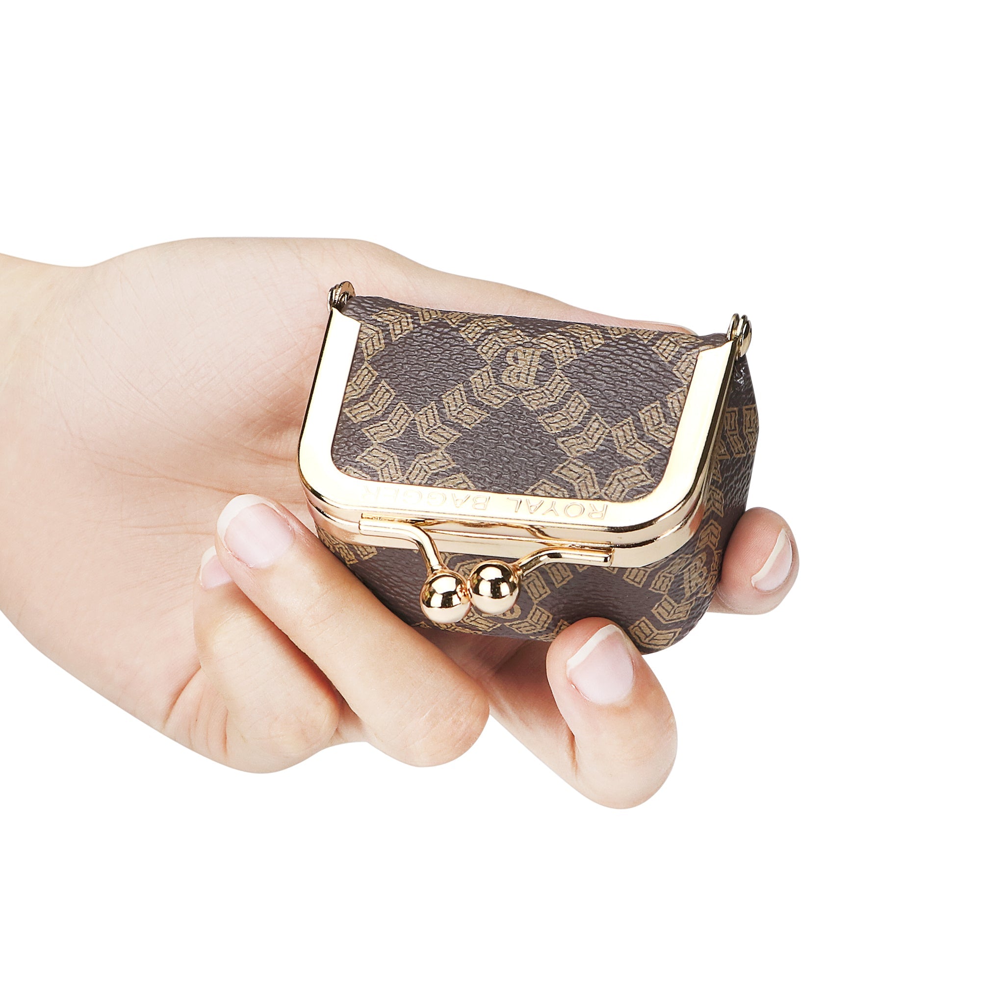 Royal Bagger Women's Mini Jewelry Box & Coin Purse – Signature Coated Canvas & Vegetable-Tanned Cowhide Leather, Solid Color Kiss Lock Change Pouch, Casual Small Storage Bag 5894