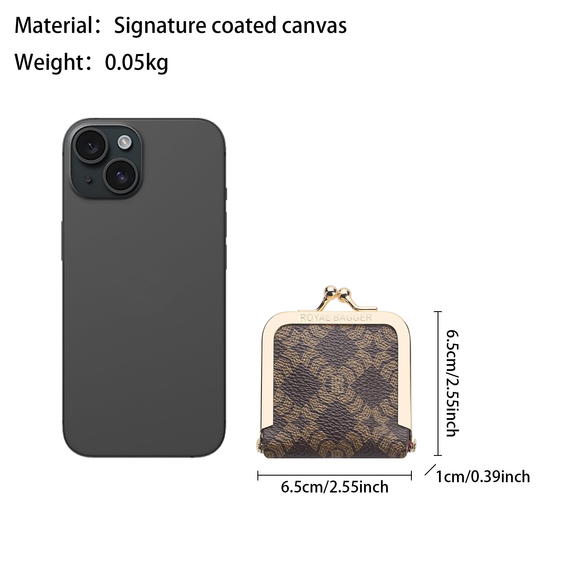 Royal Bagger Mini Ultra-Thin Jewelry Box & Kiss Lock Purse – Signature Coated Canvas, Women's Essential 8120