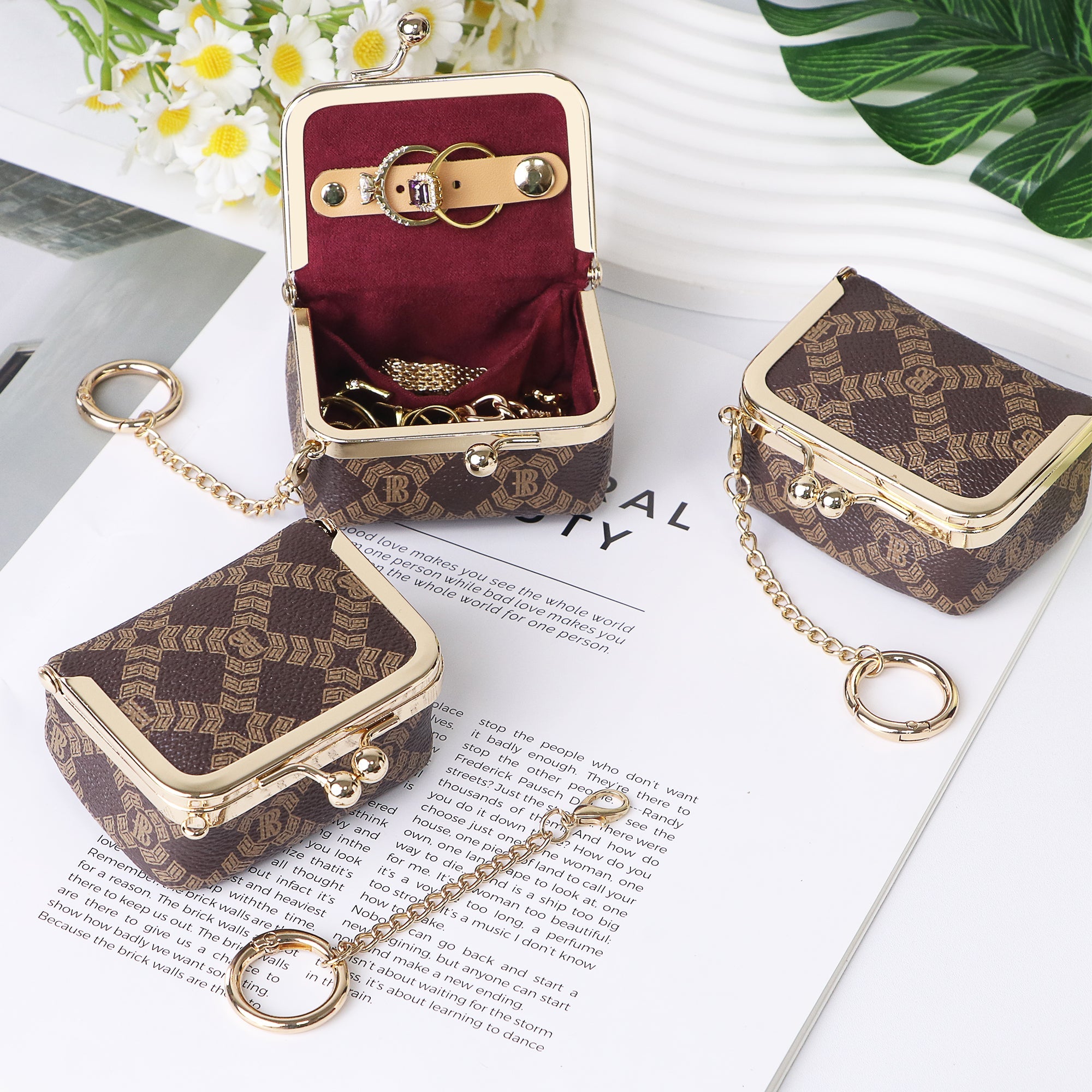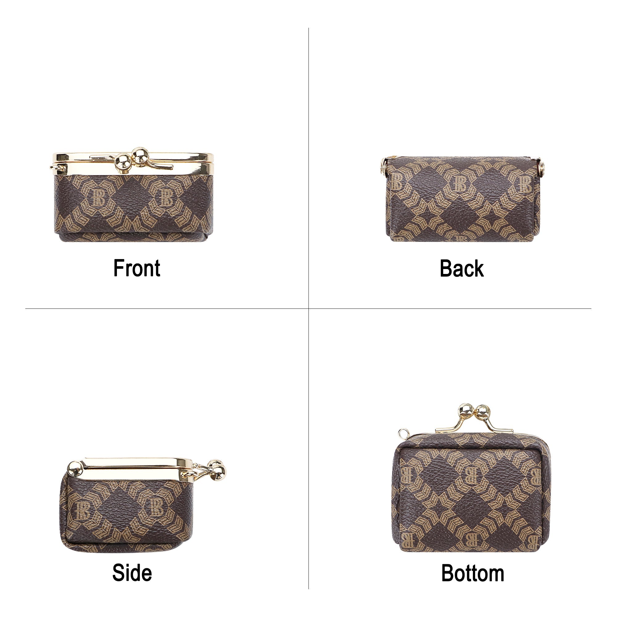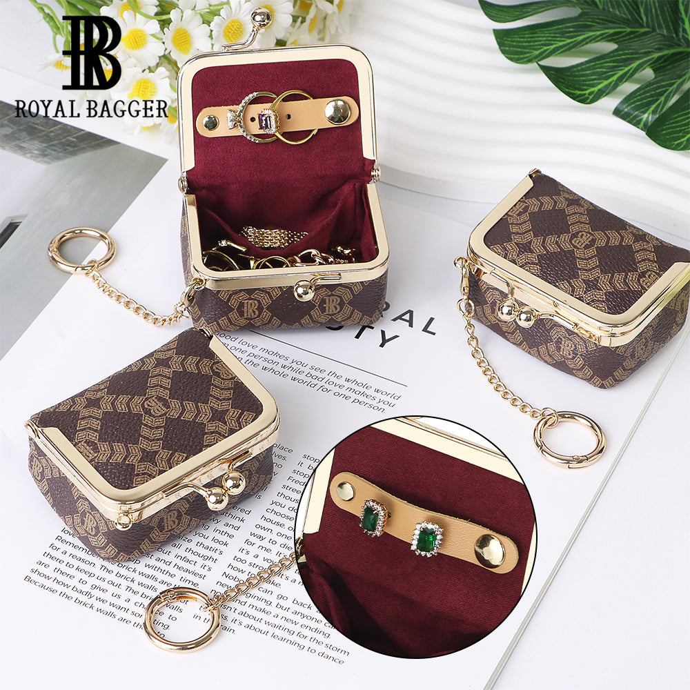 Royal Bagger Women's Mini Jewelry Box & Coin Purse with Removable Chain – Signature Coated Canvas & Vegetable-Tanned Cowhide Leather, Small Kiss Lock Storage Bag 9894