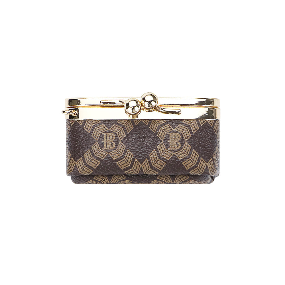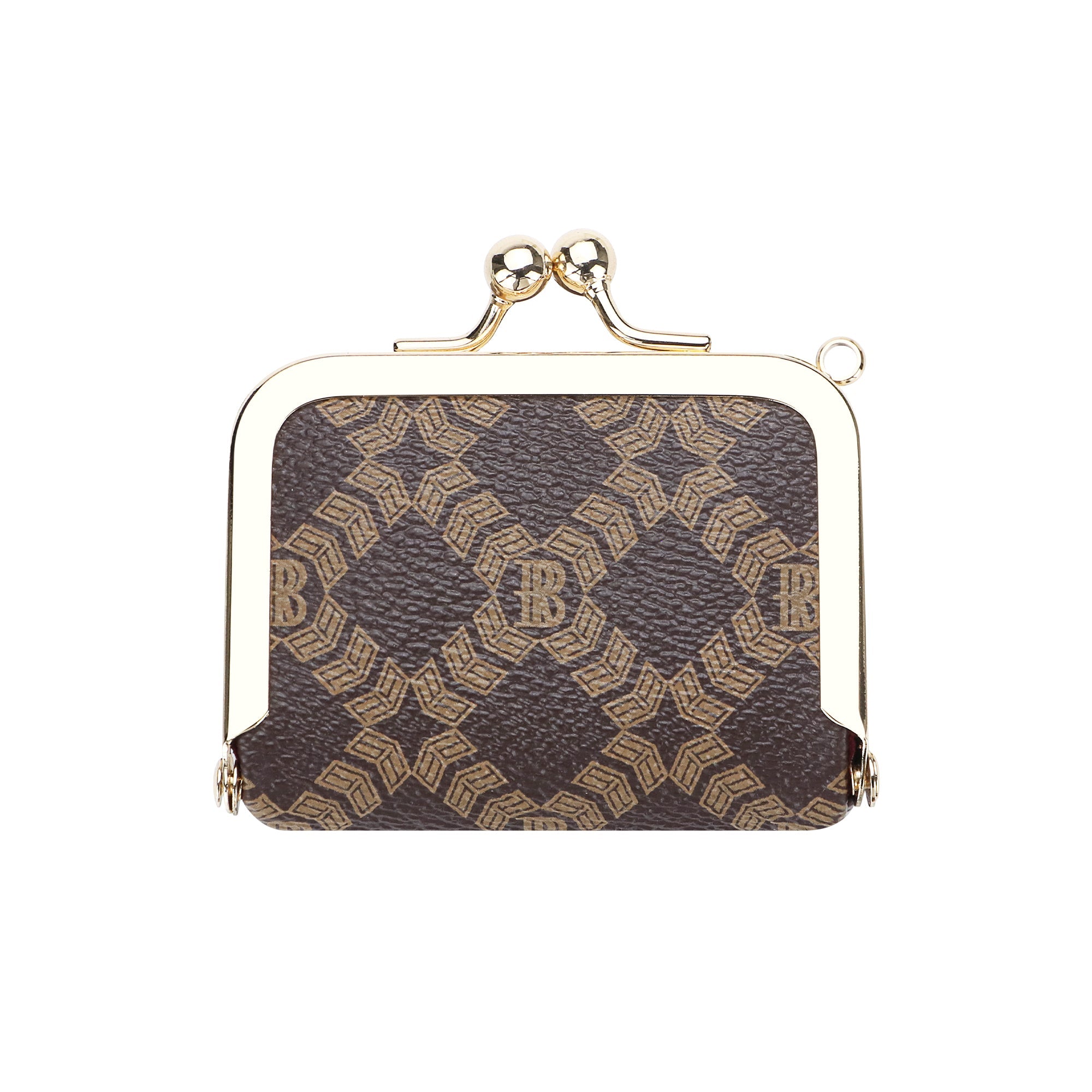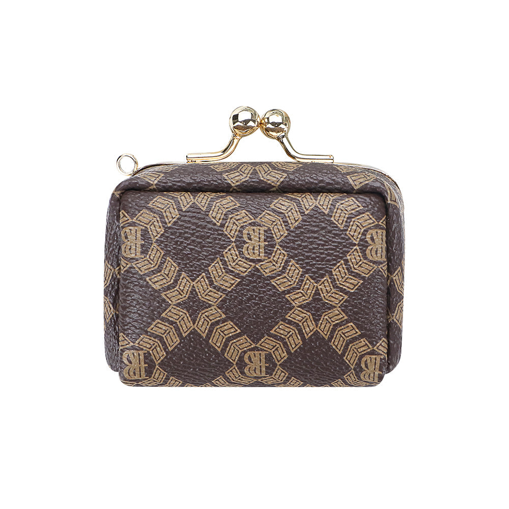 Royal Bagger Women's Mini Jewelry Box & Coin Purse with Removable Chain – Signature Coated Canvas & Vegetable-Tanned Cowhide Leather, Small Kiss Lock Storage Bag 9894